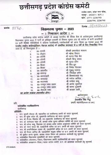 रायपुर। विधानसभा चुनाव में पार्टी के अधिकृत प्रत्याशी के खिलाफ चुनाव लड़ रहे आनंद कुकरेजा सहित 15 बागी प्रत्याशी पार्टी विरोधी गतिविधियों के आरोप में कांग्रेस से निष्कासित कर दिए गए हैं। इस संबंध में प्रदेश कांग्रेस अध्यक्ष दीपक बैज ने आदेश जारी कर दिए हैं। आनंद कुकरेजा रायपुर उत्तर के निर्दलीय प्रत्याशी हैं।