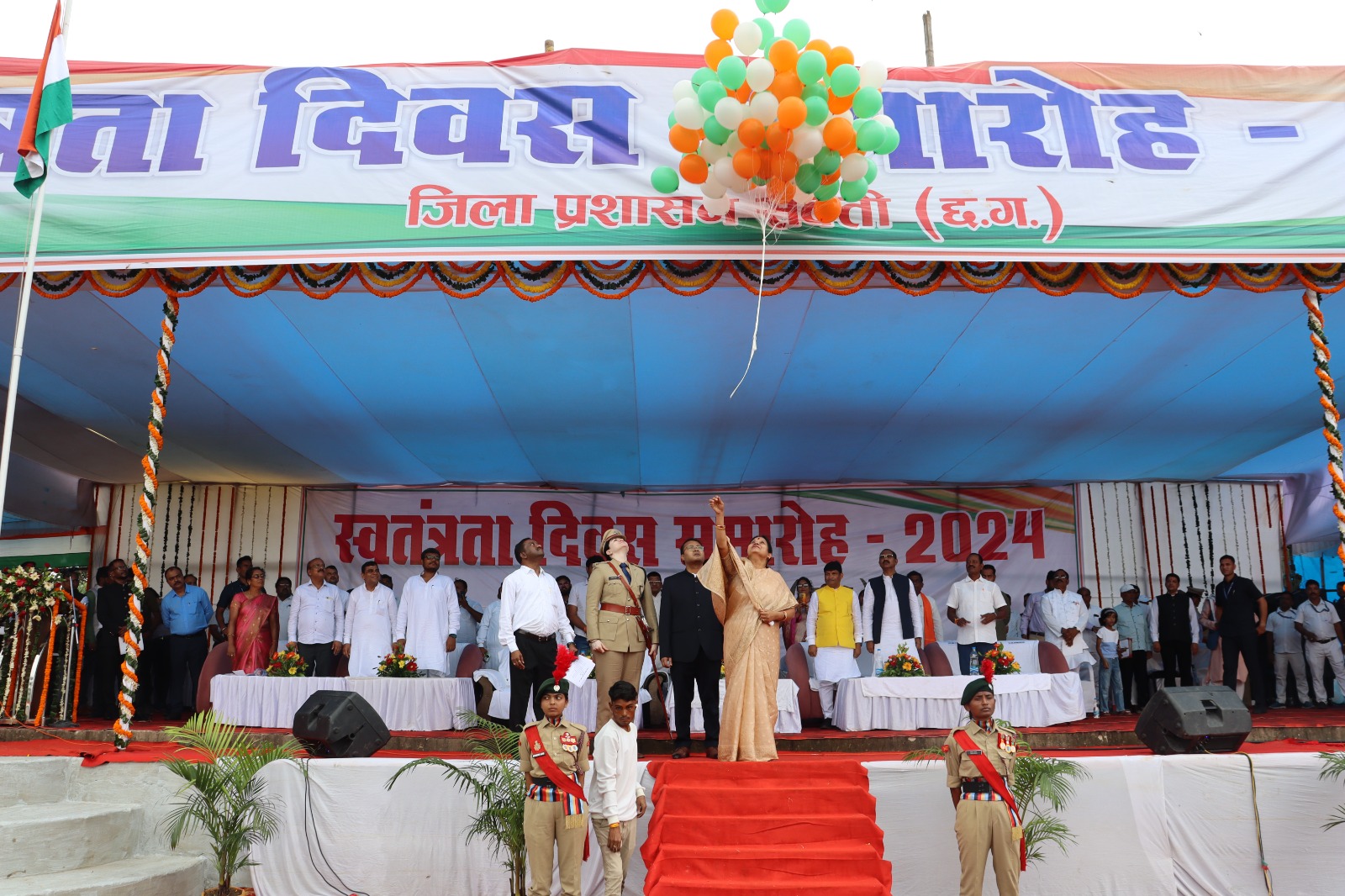कार्यक्रम में शांति के प्रतीक रंगीन गुब्बारे भी छोड़े गए। समारोह में मुख्य अतिथि सांसद लोकसभा क्षेत्र जांजगीर - चांपा श्रीमती कमलेश जांगड़े ने स्वतंत्रता संग्राम सेनानियों और शहीदों के परिजनों से भेंट कर उन्हें स्वतंत्रता दिवस की बधाई और शुभकामनाएं देने के साथ ही उन्हें शॉल और श्रीफल भेंटकर सम्मानित किया।