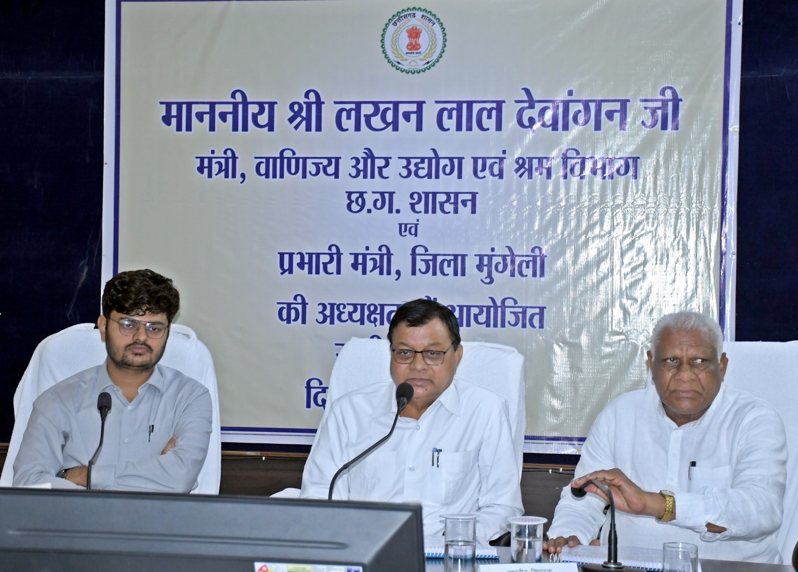 रायपुर, / वाणिज्य, उद्योग एवं श्रम मंत्री और जिले के प्रभारी मंत्री श्री लखनलाल देवांगन ने मुंगेली जिले के कलेक्टोरेट सभाकक्ष में अधिकारियों की बैठक लेकर विभागीय काम-काज की गहन समीक्षा की। बैठक में मंत्री श्री देवांगन ने कहा कि शासन की जनकल्याणकारी योजनाओं का जमीनी स्तर पर क्रियान्वयन हो और उसका लाभ अंतिम व्यक्ति को मिलना चाहिए। उन्होंने सभी अधिकारियों को अपने दायित्वों का गंभीरतापूर्वक निर्वहन करते हुए जनहित के कार्य करने प्रेरित किया।