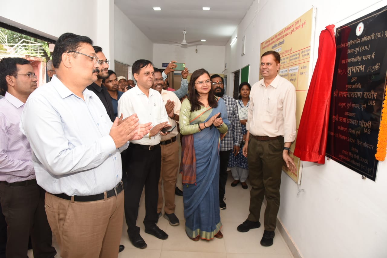दुर्ग / संभागायुक्त श्री सत्यनारायण राठौर ने आज दुर्ग स्थित हिन्दी भवन (पूर्व न्यायालय आयुक्त दुर्ग संभाग) में नवनिर्मित अनुविभागीय अधिकारी (रा.) कार्यालय भवन का उद्घाटन किया गया। पूर्व में यह तहसील कार्यालय दुर्ग के भवन में संचालित किया जा रहा था। उद्घाटन समारोह कलेक्टर सुश्री ऋचा प्रकाश चौधरी की अध्यक्षता में सम्पन्न हुआ। इस अवसर पर एडीएम श्री अरविंद एक्का, सहायक कलेक्टर श्री एम.भार्गव, एसडीएम दुर्ग श्री हरवंश सिंह मिरी एवं राजस्व विभाग के अन्य अधिकारी एवं कर्मचारीगण उपस्थित थे।