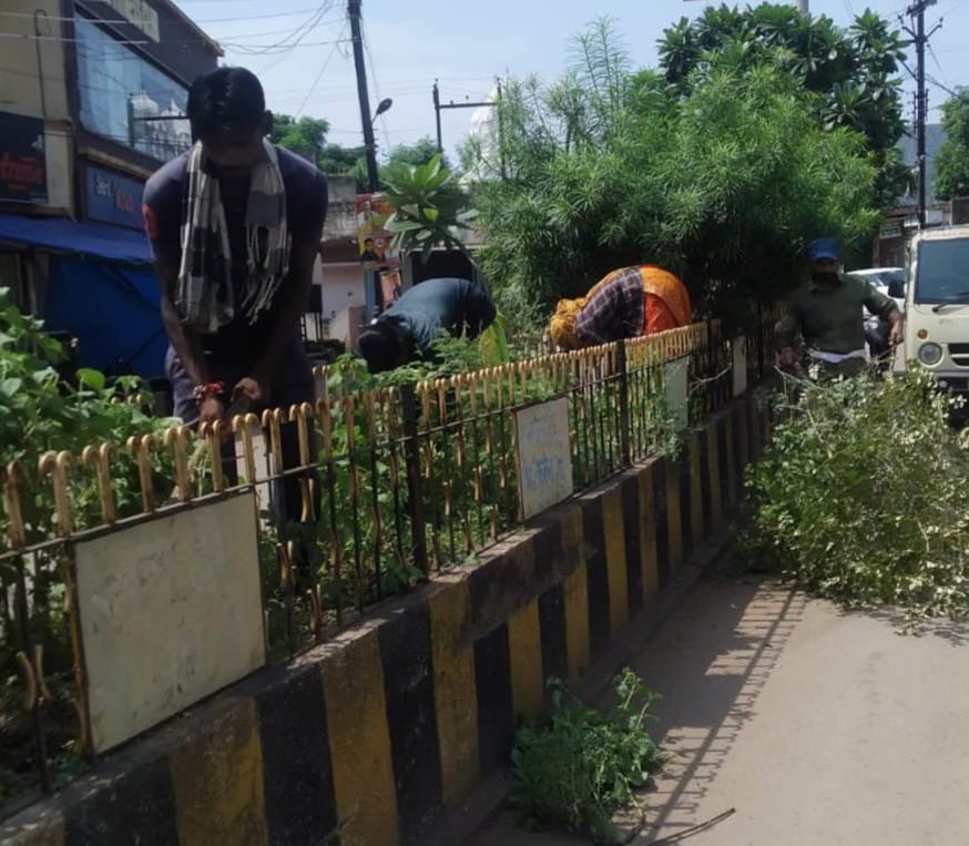 भिलाई में उद्यानों एवं डिवाइडरो में लगाये गये पौधो की कटाई-छटाई जारी