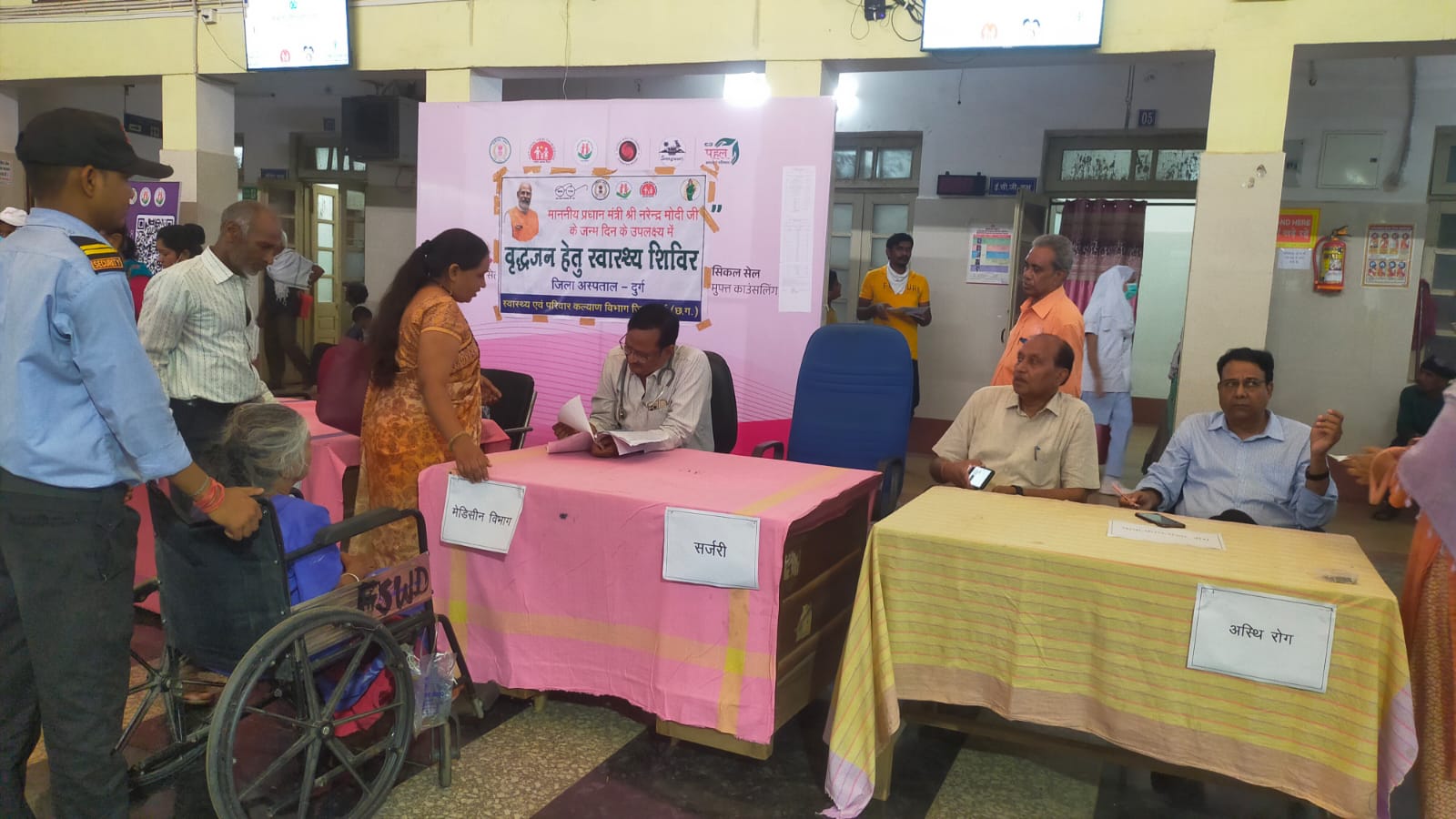 जिला चिकित्सालय दुर्ग में आयोजित शिविर में 93 वयोवृद्ध व्यक्तियों ने कराया उपचार