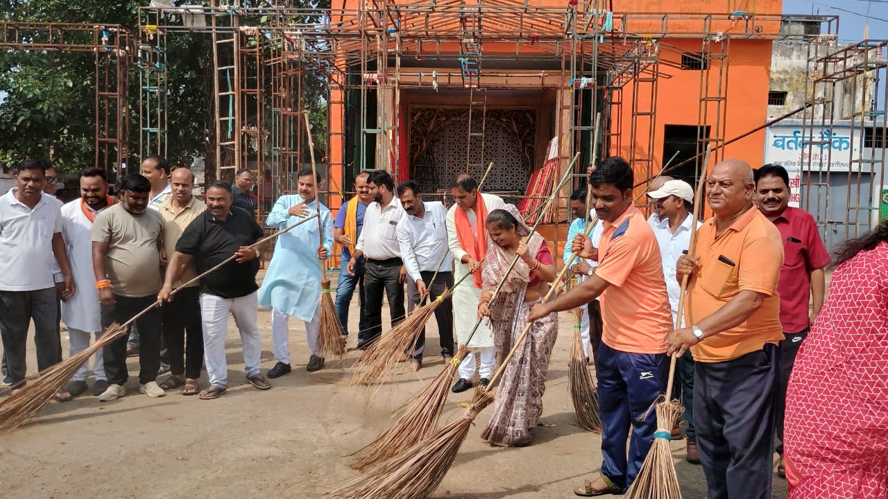 रायपुर/ स्वच्छता ही सेवा अभियान के अंतर्गत रायपुर पश्चिम विधायक श्री राजेश मूणत ने वीर शिवाजी वार्ड नम्बर 16 की पार्षद श्रीमती गोदावरी गज्जू साहू सहित वार्ड 16 में खमतराई बाजार के समीप मार्ग में झाड़ू लगाकर सफाई श्रमदान करते हुए नगरवासियों को स्वच्छ रायपुर नगर का सकारात्मक सन्देश दिया. रायपुर पश्चिम विधायक श्री राजेश मूणत , पार्षद श्रीमती गोदावरी गज्जू साहू, नगर निगम रायपुर के पूर्व पार्षद श्री गोपी साहू रायपुर शहर जिला भाजपा के पूर्व अध्यक्ष श्री अशोक पाण्डेय ने महात्मा गाँधी की प्रतिमा पर आज उनकी जयन्ती पर उन्हें सादर नमन करते हुए श्रद्धांजलि अर्पित की. इस अवसर पर वार्ड के निवासी गणमान्यजनों, सामाजिक कार्यकर्त्ताओं, महिलाओं, नवयुवकों सहित नगर निगम जोन 1 जोन कमिश्नर श्री हितेंद्र यादव , कार्यपालन अभियंता श्री गजाराम कँवर और नगर निगम जोन नम्बर 1 के अधिकारियों , कर्मचारियों सफाई मित्रों की आमजनों सहित सफाई श्रमदान कर स्वच्छता कायम करने सहभागिता रही. इस अवसर पर रायपुर पश्चिम विधायक श्री राजेश मूणत ने सफाई मित्रों को सम्मनित किया.