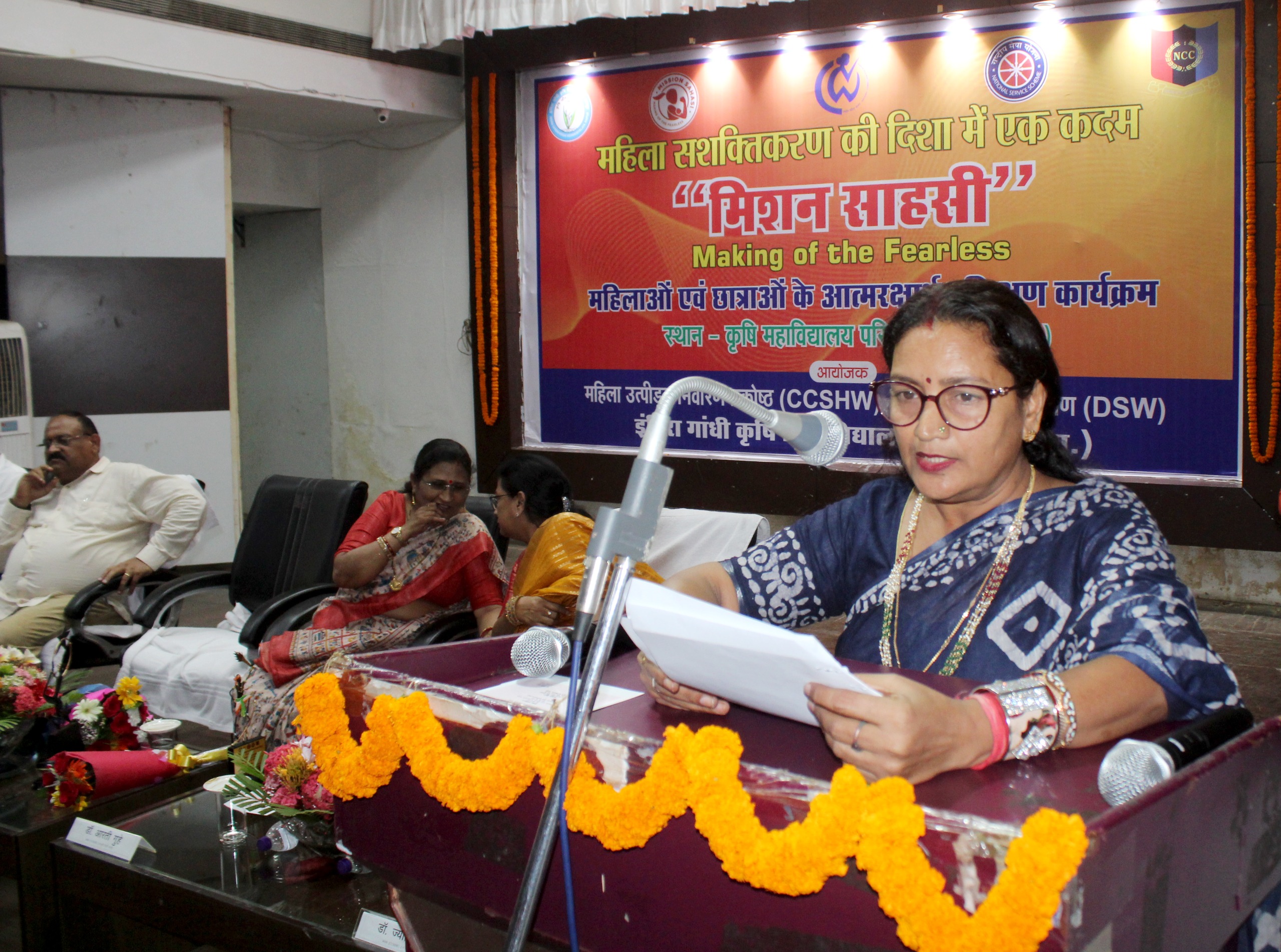 कार्यक्रम की अध्यक्षता करते हुए लैगिंक उत्पीड़न शिकायत समिति की अध्यक्ष डॉ. आरती गुहे ने कहा कि इस तीन दिवसीय प्रशिक्षण कार्यक्रम मिशन साहसी का मुख्य उद्देश्य विश्वविद्यालय में कार्यरत महिलाओं एवं अध्ययनरत छात्रओं की सुरक्षा एवं उनकी आत्म विश्वास को बढ़ाना है, जिससे समाज में महिलाओं के प्रति दृष्टिकोण परिवर्तित हो सके। उन्होंने कहा कि इस कार्यक्रम के विषय में उल्लेखित साहसी शब्द से हमारा पुराना नाता है, जब-जब बुराई बढ़ी है तब-तब शक्ति स्वरूपा दुर्गा देवी अवतरित हुई एवं बुराई का अंत किया और यह सिद्ध किया कि नारी शक्ति से बड़ी और कोई शक्ति नहीं होती। उन्हांने कहा कि इस तीन दिवसी प्रशिक्षण कार्यक्रम का प्रत्येक दिवस प्रेरक नारी शक्ति को समर्पित है। आज का दिन रानी अहिल्या बाई होलकर को समर्पित है, क्योंकि वे सशक्त नारी का अनुपम उदाहरण है, क्योकि रानी अहिल्या बाई असाधारण शासक, कुशल न्याय प्रिय प्रशासक, धर्म एवं संस्कृति का संरक्षण करने वाली नारी थीं। समारोह में विशिष्ट अतिथि डॉ. संजय शर्मा एवं डॉ. जी.के. दास ने अपने संबोधन से प्रतिभागियों का उत्साह वर्धन किया। कार्यक्रम के प्रारंभ में स्वागत भाषण डॉ. ज्योति भट्ट ने दिया एवं कार्यक्रम का संचालन डॉ. दीप्ति झा ने किया।