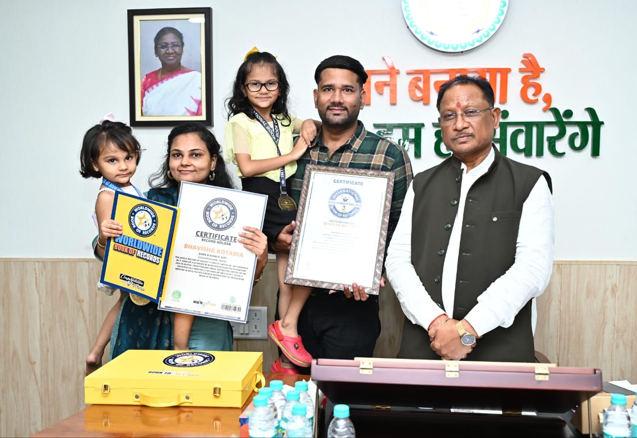 नन्ही रिकॉर्ड होल्डर बेटियों को मुख्यमंत्री ने दिया आशीर्वाद