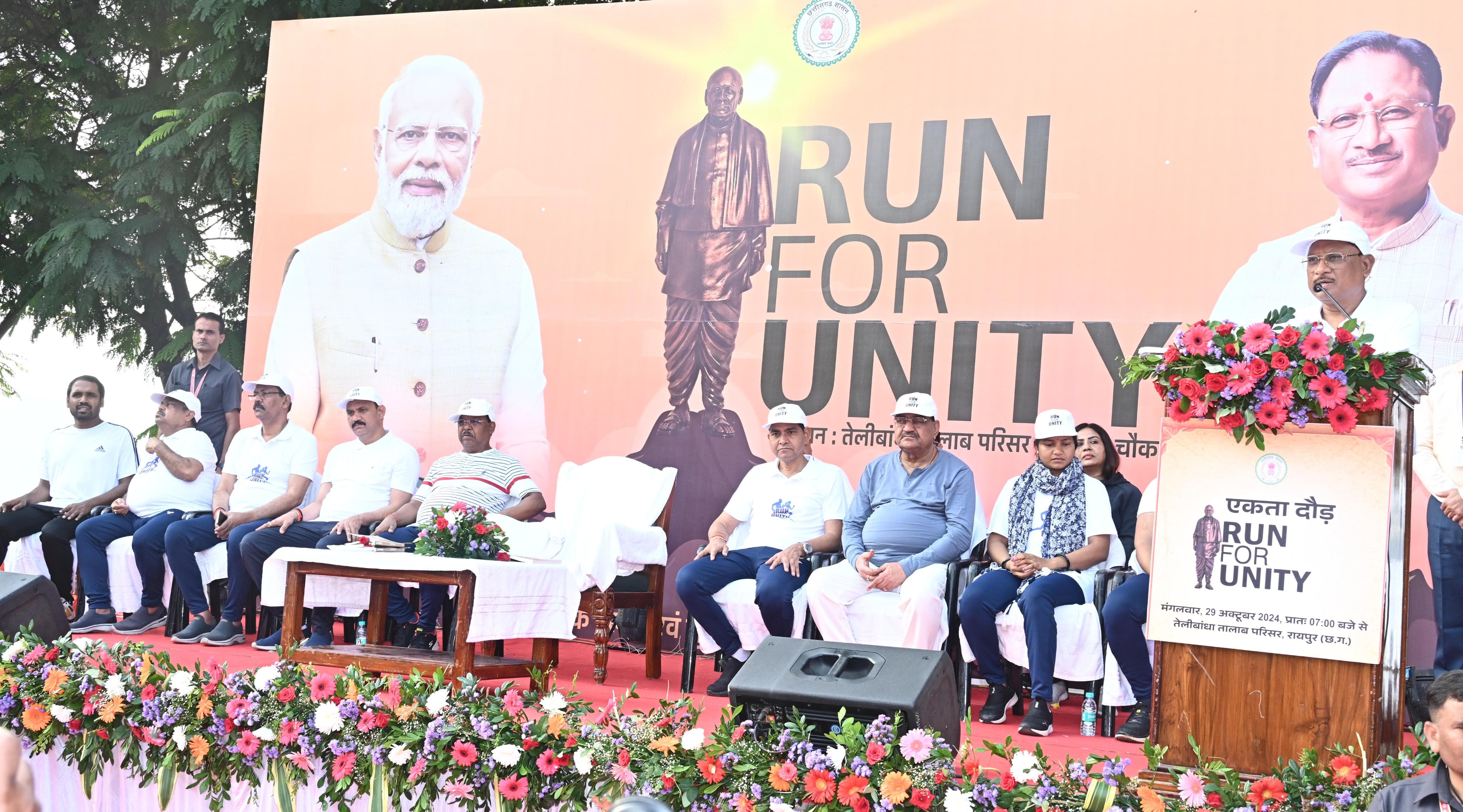 खेल मंत्री श्री टंकराम वर्मा ने कहा कि रन फॉर यूनिटी देश की एकता, अखंडता और सुरक्षा का संदेश देता है। सरदार पटेल ने देश की अखंडता के लिए 500 से अधिक रियासतों को एक बनाया। उन्होंने कहा कि हमारे देश के यशस्वी प्रधानमंत्री श्री नरेंद्र मोदी ने 2047 तक विकसित भारत बनाने का जो लक्ष्य रखा है, इसे पूरा करने के लिए हम सभी मिलकर आगे बढ़े।