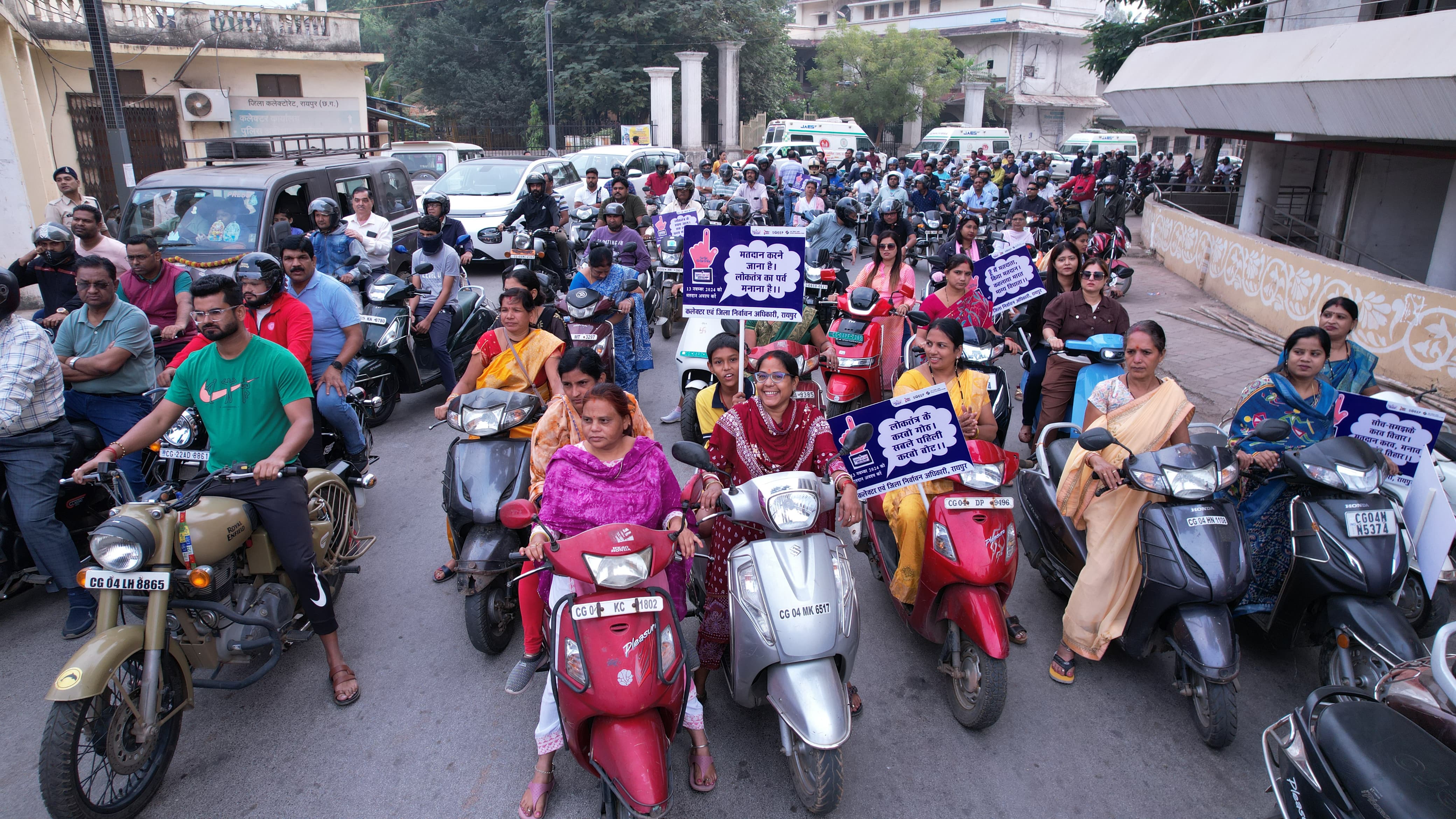 रायपुर/ दक्षिण विधानसभा उप चुनाव में अधिक से अधिक मतदान के लिए मतदाताओं को जागरूक करने आज कलेक्टर डॉ. गौरव सिंह तथा एसएसपी श्री संतोष सिंह के नेतृत्व में स्वीप बाइक रैली का आयोजन किया गया।