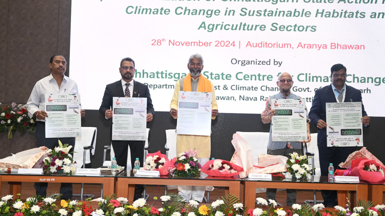 रायपुर।छत्तीसगढ़ राज्य जलवायु परिवर्तन केंद्र (CGSCCC) द्वारा नवा रायपुर अटल नगर स्थित अरण्य भवन में ”सतत आवास और कृषि क्षेत्रों में छत्तीसगढ़ राज्य जलवायु परिवर्तन कार्य योजना (APCC) के क्रियान्वयन” पर एक दिवसीय कार्यशाला का आयोजन किया गया। इस अवसर पर एयर कंडीशनर तापमान विनियमन पर पोस्टर और जलवायु परिवर्तन से संबंधित 100 सफलता कहानियों पर आधारित एक पुस्तक का विमोचन किया गया।