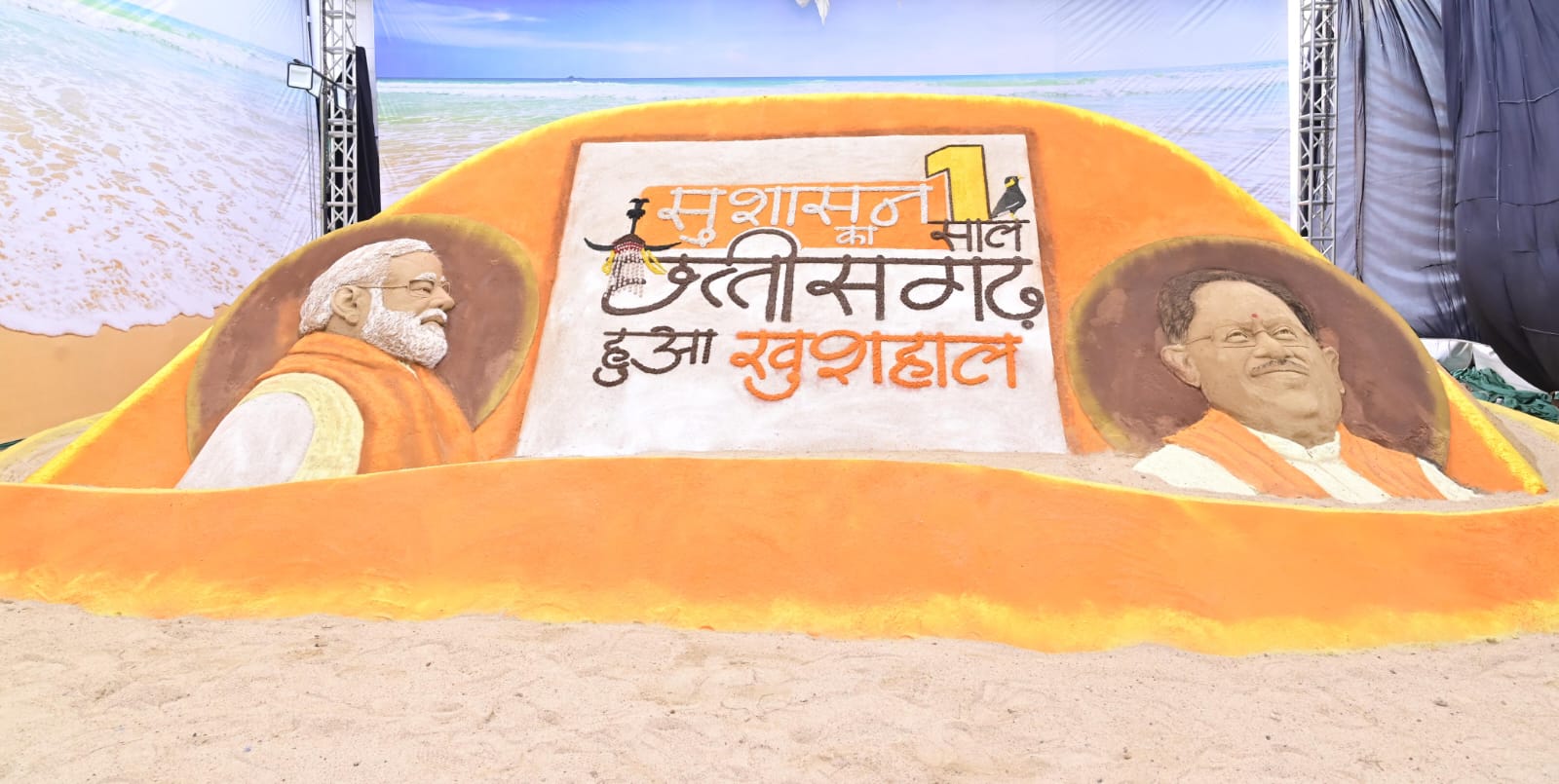 सैंड आर्ट के माध्यम से दिखी विष्णु सरकार के सुशासन और विकास की झलक