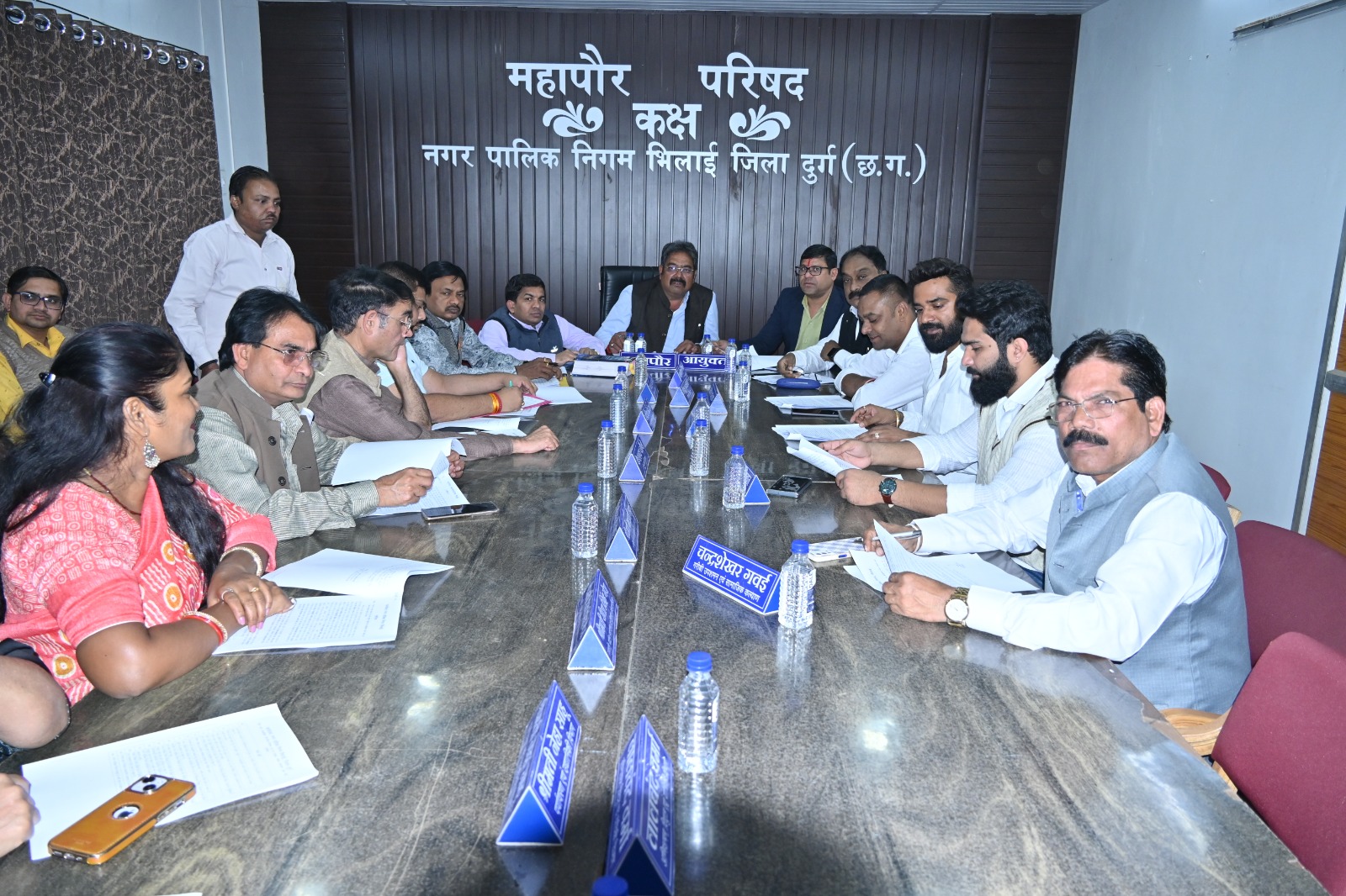 भिलाईनगर। नगर पालिक निगम भिलाई के महापौर परिषद की बैठक गुरूवार को एमआईसी कक्ष में आहूत की गई। जिसकी अध्यक्षता महापौर नीरज पाल, आयुक्त राजीव कुमार पाण्डेय एवं महापौर परिषद के सदस्यो की उपस्थिति में की गई। बैठक में प्रमुख रूप से 14 एजेण्डा पर विस्तृत चर्चा की गई। 1 आंगनबाड़ी कार्यकर्ता एवं 5 सहायिकाओं की नियुक्ति हेतु महापौर परिषद से अनुमोदन किया गया। निगम के वाहन शाखा हेतु उच्च कुशल, कुशल, अद्र्वकुशल वाहन चालक एवं हेल्फर उपलब्ध कराने का कार्य चर्चा के बाद पारित किया गया। राज्य प्रवर्तित योजना अंतर्गत वर्ष 2020-21 से 2021-22 तक निविदा उपरांत एसओआर से कम के कारण बचत राशि से कार्य कराये जाने की अनुसंशा प्रदान की गई है। इस कार्य हेतु संबंधित अभियंता की तारिफ की गई।