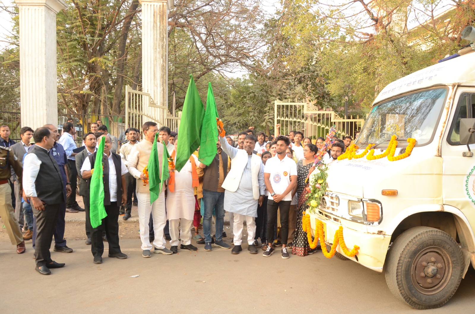 रायपुर । प्रभारी मंत्री श्री केदार कश्यप ने शनिवार को एक युद्ध-नशे के विरूद्ध वैन को कलेक्टोरेट परिसर से हरी झंडी दिखाकर रवाना किया। प्रचार वाहन के माध्यम से लोगों को नशे के लत से होने वाले नुकसान के बारे में जागरूक किया जाएगा। यह अभियान नशे के प्रति समाज में चेतना लाने के लिए कार्य करेगा। प्रचार वाहन के माध्यम से विभिन्न क्षेत्रों में नशे के दुष्प्रभावों पर संदेश दिया जाएगा और समाज के लोगों को जागरूक किया जाएगा।