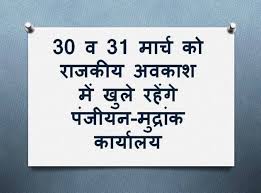 30 और 31 मार्च को अवकाश में भी खुले रहेंगे रजिस्ट्री कार्यालय