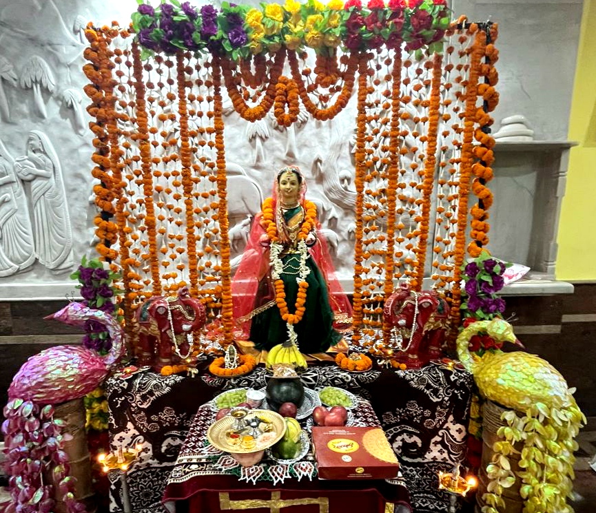 रायपुर। तात्यापारा स्थित प्राचीन हनुमान मंदिर में नवरात्र की पंचमी के दिन माता कौशल्या की गोद भराई (डोहाळ जेवण) की रस्म हर्षोल्लास के साथ उत्सवपूर्वक पूरी की गई। मंदिर समिति की नमिता शेष ने बताया कि रामनवमी पर श्रीराम के जन्मोत्सव के पूर्व यह परंपरा निभाई जाती है। हम जिसे अपने घरों पर नवजात के जन्म के पहले गोद भराई की रस्म अदायगी की है। ठीक उसी तरह मंदिर समिति के सदस्यों और महिलाओं द्वारा यह रस्म निभाई गई। माता कौशल्या के स्नान, श्रृंगार के साथ उन्हें नाना प्रकार के व्यंजनों औऱ फलों का भोग लगाया गया। उनकी ओटी (आंचल) भरी गई।