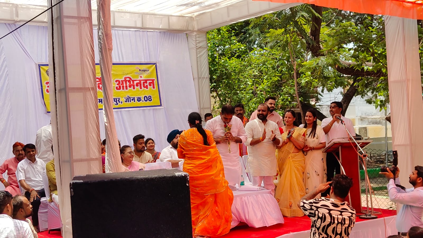 रायपुर - आज प्रदेश के पूर्व केबिनेट मन्त्री रायपुर पश्चिम विधायक श्री राजेश मूणत ने रायपुर पश्चिम विधानसभा क्षेत्र के अंतर्गत रायपुर नगर पालिक निगम के जोन क्रमांक 8 के अंतर्गत शहीद भगत सिंह वार्ड क्रमांक 21 के क्षेत्र में 90 लाख रूपये की स्वीकृत लागत से नवीन विविध विकास कार्यों को शीघ्र जनहित में जनसुविधा विस्तार की दृष्टि से करवाने हेतु श्रीफल फोड़कर और कुदाल चलाकर भूमिपूजन नगर निगम लोक कर्म विभाग के अध्यक्ष श्री दीपक जायसवाल, शहीद भगत सिंह वार्ड पार्षद एवं निगम स्वास्थ्य विभाग अध्यक्ष श्रीमती गायत्री सुनील चंद्राकर, जोन 8 जोन अध्यक्ष श्री प्रीतम सिंह ठाकुर, वार्ड पार्षद श्रीमती मीना ठाकुर, सर्वश्री भगतराम हरवंश, अमन सिंह ठाकुर, आनंद अग्रवाल, महेन्द्र औसर, अर्जुन यादव, पूर्व पार्षद श्री गोपी साहू,सामाजिक कार्यकर्त्ता सुश्री प्रभा दुबे, नगर निगम जोन 8 जोन कमिश्नर श्रीमती राजेश्वरी पटेल, गणमान्यजनों, सामाजिक कार्यकर्त्ताओं, महिलाओं, नवयुवकों,वार्डवासियों, आमजनों की बड़ी संख्या में उपस्थिति के मध्य किया. नए विकास कार्यों में टाटीबंध चर्च के पास एम्स हॉस्पिटल के पास चौक निर्माण कार्य, टाटीबंध मिडिल स्कूल का जीर्णोद्धार कार्य,टाटीबंध में सामुदायिक भवन निर्माण, स्वामी दयानन्द सरस्वती स्कूल टाटीबंध में शेड निर्माण कार्य, यदुवंशी चौक में अपूर्ण रंगमंच को पूर्ण करने का कार्य एवं अन्य नए विविध विकास कार्य रायपुर पश्चिम विधानसभा क्षेत्र के अंतर्गत नगर निगम रायपुर के जोन 8 के अंतर्गत शहीद भगत सिंह वार्ड नम्बर 21 के क्षेत्र में शीघ्र करवाए जायेंगे. नए विकास कार्य वार्ड में प्रारम्भ करवाए जाने पर वार्ड 21 पार्षद एवं निगम स्वास्थ्य विभाग अध्यक्ष श्रीमती गायत्री सुनील चंद्राकर ने समस्त वार्डवासियों की ओर से प्रदेश के पूर्व केबिनेट मन्त्री रायपुर पश्चिम विधायक श्री राजेश मूणत को हार्दिक धन्यवाद दिया.