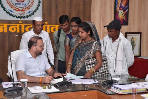 राजनांदगांव । कलेक्टर डॉ. सर्वेश्वर नरेन्द्र भुरे ने मंगलवार को जिला कार्यालय के सभाकक्ष में आयोजित साप्ताहिक जनदर्शन में जिले के विभिन्न स्थानों से आए नागरिकों की समस्याएं एवं शिकायतें सुनी। कलेक्टर डॉ. सर्वेश्वर नरेन्द्र भुरे ने जनदर्शन में प्राप्त आवेदनों को प्राथमिकता के साथ शीघ्र निराकरण के लिए संबंधित विभागीय अधिकारियों को निर्देशित किया। उन्होंने कहा कि दूरस्थ क्षेत्रों से जनसामान्य यहां आते हैं, उनकी समस्याओं का निराकरण करते हुए उन्हें शासन की विभिन्न योजनाओं के अंतर्गत लाभान्वित करना है। आवेदनों का अवलोकन कर नियमानुसार पात्र हितग्राहियों को शासकीय योजनाओं से लाभान्वित करने के लिए कहा। जनदर्शन में प्रधानमंत्री आवास योजना से लाभान्वित करने, नक्शा बटांकन, अतिक्रमण हटाने, पट्टा, भू-अर्जन सहित विभिन्न शासकीय योजनाओं से लाभ दिलाने जैसे आवेदन प्राप्त हुए। कलेक्टर डॉ. भुरे ने जनदर्शन में प्राप्त आवेदनों का प्राथमिकता के साथ निराकरण के लिए निर्देश दिए। इस अवसर पर सीईओ जिला पंचायत सुश्री सुरूचि सिंह, अपर कलेक्टर श्री सीएल मारकण्डेय, अपर कलेक्टर श्री प्रेम प्रकाश शर्मा, नगर निगम आयुक्त श्री अतुल विश्वकर्मा, एसडीएम राजनांदगांव श्री खेमलाल वर्मा, एसडीएम डोंगरगांव श्री मनोज मरकाम, एसडीएम डोंगरगढ़ श्री श्रीकांत कोर्राम सहित अन्य अधिकारी उपस्थित थे।