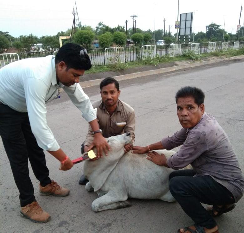आवारा पशुओं को दुर्घटना से बचाने रेडियम बेल्ट एवं इयर टैगिंग