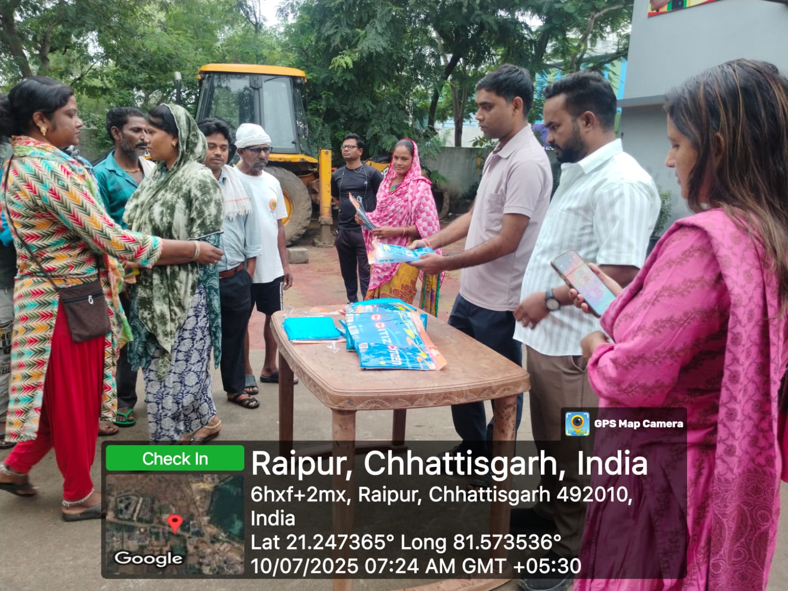 रायपुर/ नगर पालिक निगम रायपुर के जोन 8 अंतर्गत संत रविदास वार्ड क्रमांक 70 अंतर्गत सरोना में वार्ड 70 के 30 ठेका सफाई कामगारों को मानसून में अनुबंधित सफाई ठेकेदार द्वारा नियमानुसार उपलब्ध करवाये गए रेनकोट वार्ड पार्षद श्री अर्जुन यादव द्वारा नगर निगम जोन 8 जोन कमिश्नर श्रीमती राजेश्वरी पटेल सहित स्वच्छ भारत मिशन के जोन 8 नोडल अधिकारी सहायक अभियंता श्री फरहाज फारूखी, जोन स्वास्थ्य अधिकारी श्री गोपीचंद देवांगन की उपस्थिति में प्रदत्त किये गए और सभी 30 ठेका सफाई कामगारों से मानसून में ड्यूटी पर रेनकोट पहनकर कर्तव्य निर्वहन की अपील की गयी.