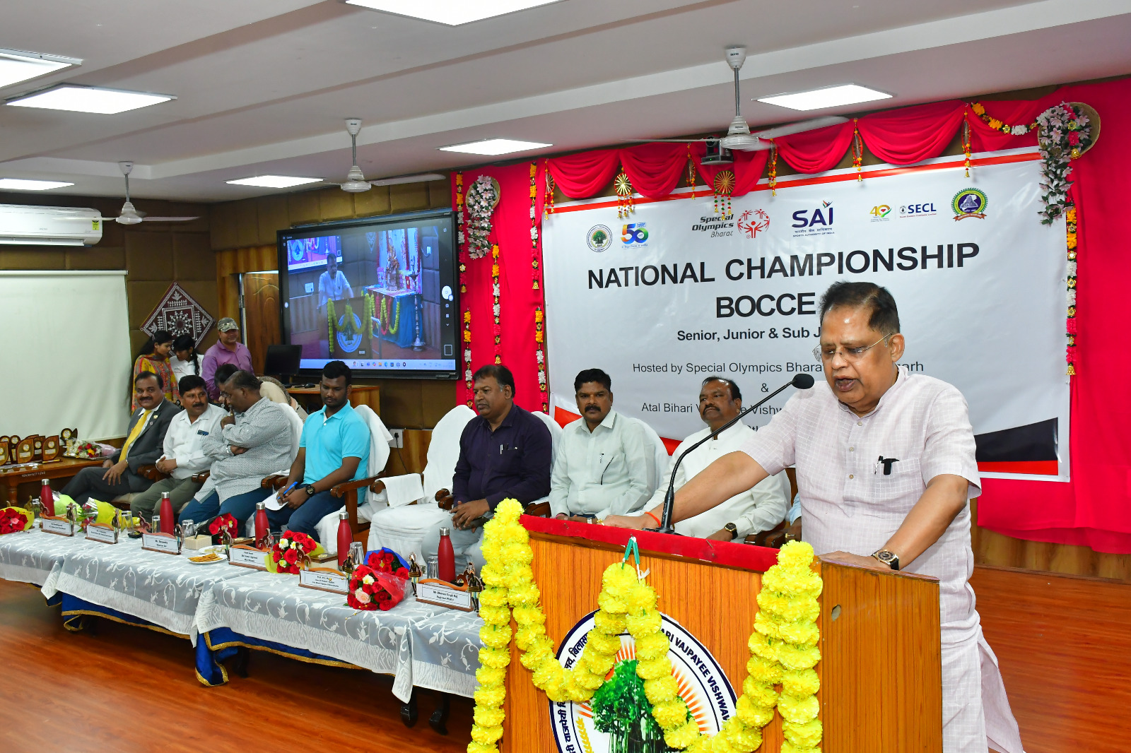बिलासपुर/स्पेशल ओलंपिक भारत छत्तीसगढ़ एवं अटल बिहारी वाजपेयी विश्वविद्यालय के संयुक्त तत्वावधान में राष्ट्रीय बोच्ची प्रतियोगिता का आयोजन 24 से 28 जुलाई तक पंडित सुंदरलाल शर्मा विश्वविद्यालय, बिलासपुर में किया गया। प्रतियोगिता में देशभर के 22 राज्यों से 250 बौद्धिक दिव्यांग एथलीट, 50 कोच और 20 रिसोर्स पर्सन शामिल हुए। जहां बौद्धिक रूप से दिव्यांग बच्चों ने अपनी खेल प्रतिभा का प्रदर्शन किया।