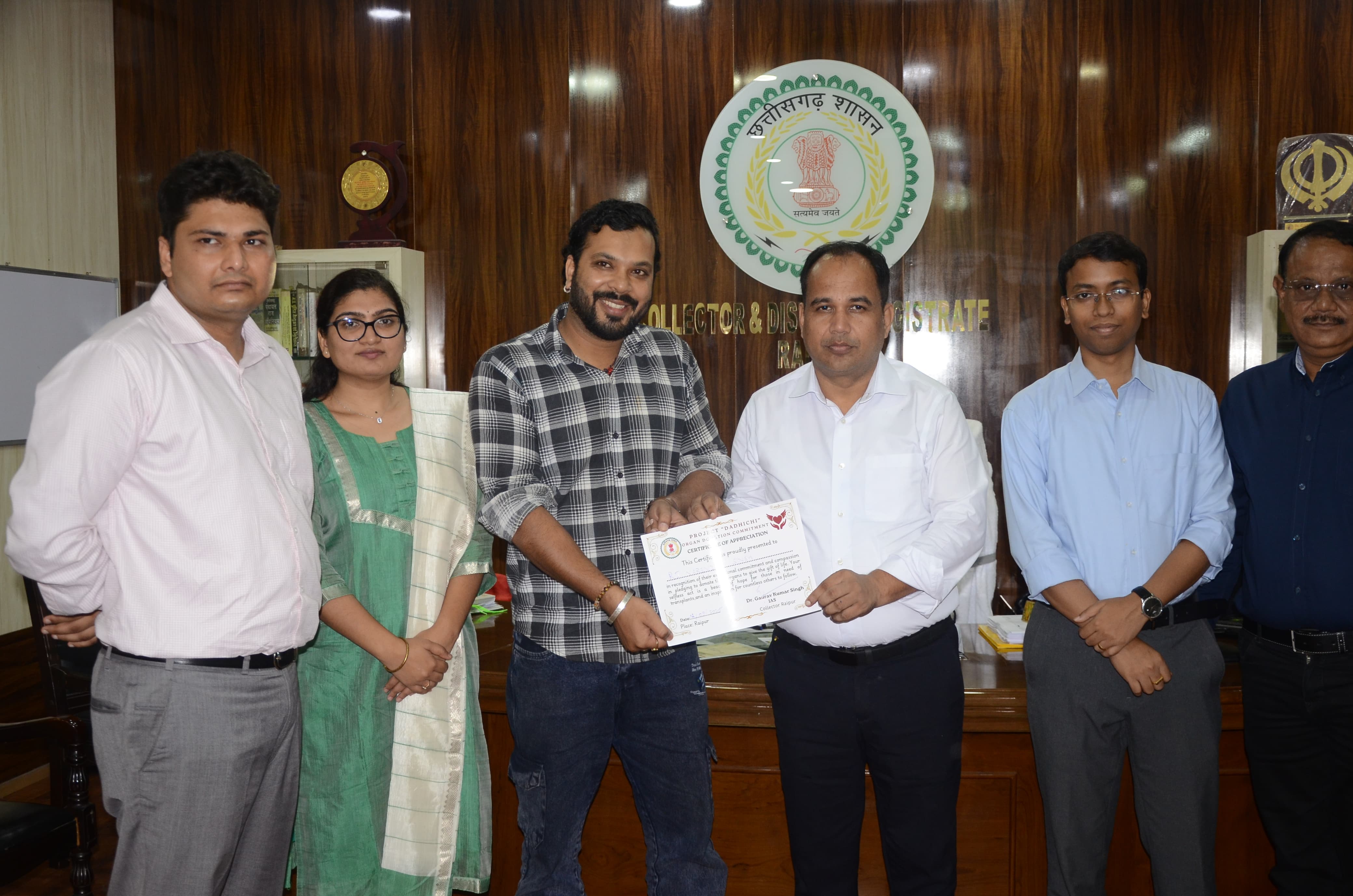 इस कड़ी में आज राजधानी के जाने-माने रेडियो जॉकी श्री नरेंद्र सिंह ने एक प्रेरणादायक कदम उठाते हुए अपना संपूर्ण देहदान करने का संकल्प लिया। इस अवसर पर कलेक्टर डॉ. गौरव सिंह ने उन्हें सम्मानित करते हुए प्रमाण पत्र प्रदान किया।