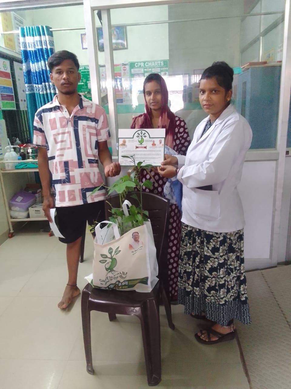 0-‘ग्रीन पालना अभियान’ के तहत नवप्रसूता माताओं को भेंट स्वरूप दिए गए 5 फलदार पौधे"