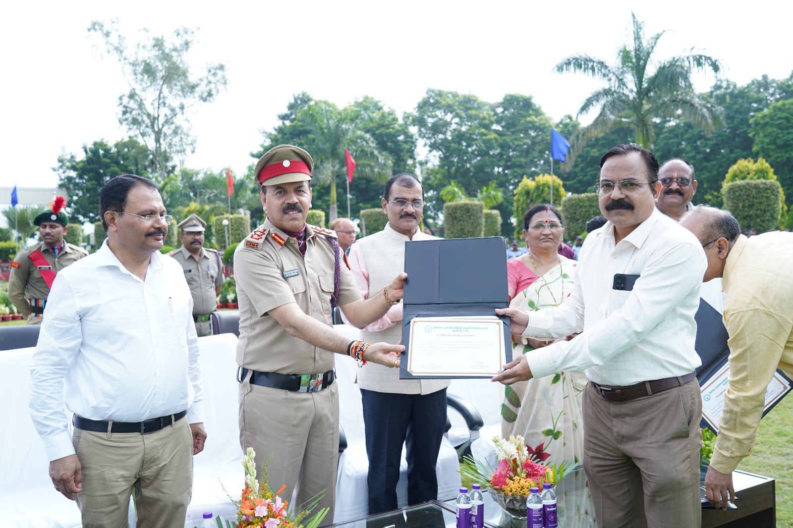 रायपुर दिनांक 16 अगस्त 2025। इंदिरा गांधी कृषि विश्वविद्यालय, रायपुर के प्रशासनिक भवन में कुलसचिव डॉ. सी.पी. खरे ने राष्ट्रध्वज फहराया और झण्डे को सलामी दी। इस अवसर पर ओ.एस.डी. (स्थापना) डॉ. श्रीकान्त चितले, उप कुलसचिव (स्थापना) डॉ. येमन कुमार देवांगन सहित विश्वविद्यालय प्रशासन के अधिकारी एवं कर्मचारीगण उपस्थित थे।