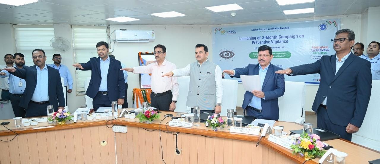 रायपुर /एसईसीएल मुख्यालय बिलासपुर में केंद्रीय सतर्कता आयोग, नई दिल्ली के निर्देशानुसार तीन माह के निवारक सतर्कता (Preventive Vigilance) अभियान का शुभारंभ किया गया। इस अवसर पर मुख्य अतिथि के रूप में मुख्यमंत्री के सचिव श्री पी. दयानन्द उपस्थित थे।
