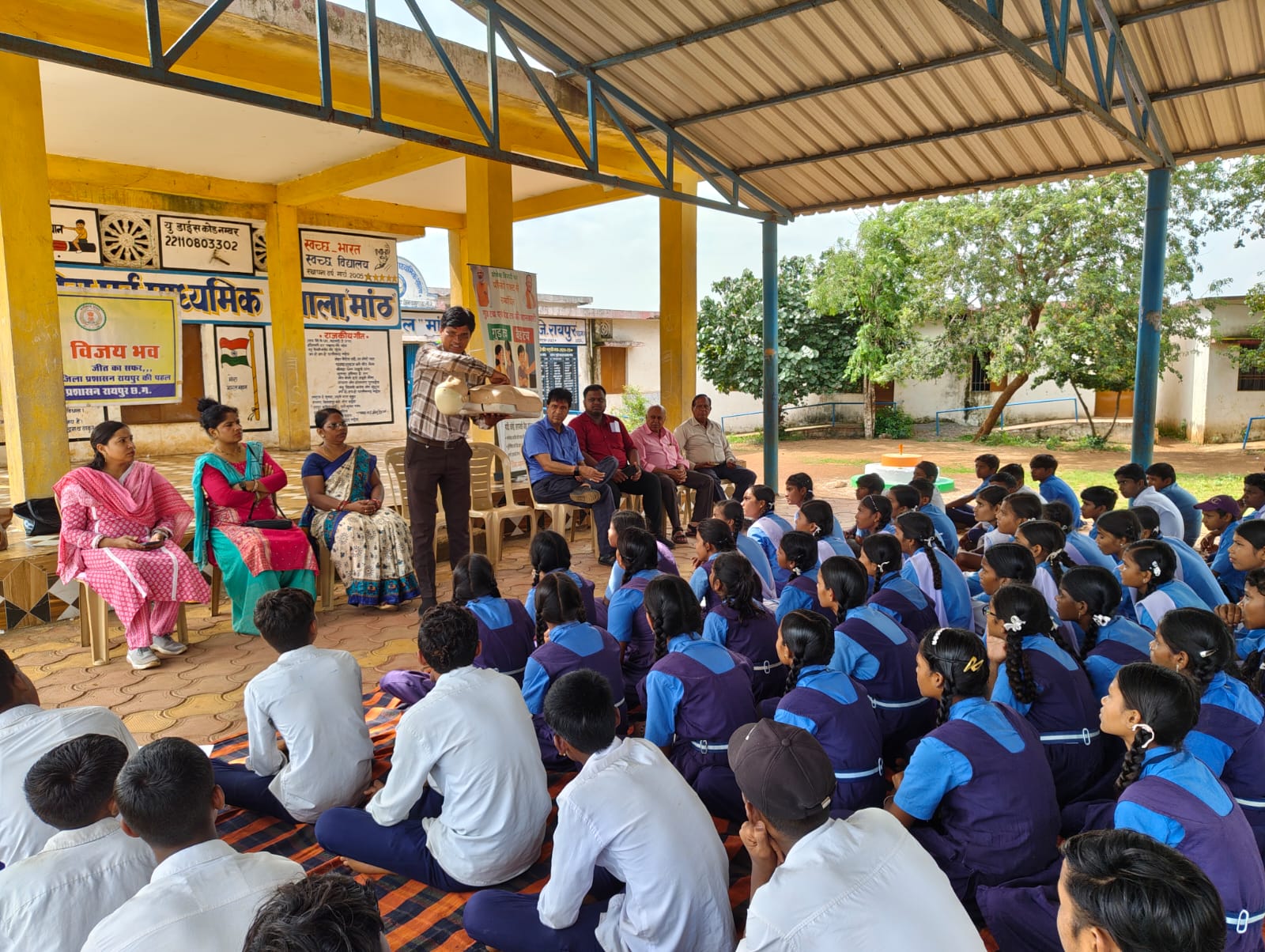 शासकीय उच्चतर माध्यमिक विद्यालय मांट में 105 बच्चों व शिक्षकों को प्रथम बैच में प्रशिक्षण दिया गया। द्वितीय बैच में स्वामी आत्मानंद शासकीय उच्चतर माध्यमिक उत्कृष्ट इंग्लिश मीडियम विद्यालय गनियारी तिल्दा में 150 बच्चों शिक्षकों को तथा 3rd बैच में शासकीय हाई स्कूल घेवरा में 60 बच्चों को प्रशिक्षण दिया गया। छात्र-छात्राओं के साथ शिक्षकों को भी प्राथमिक उपचार और सीपीआर (कार्डियो पल्मोनरी रिससिटेशन) का प्रशिक्षण दिया गया।