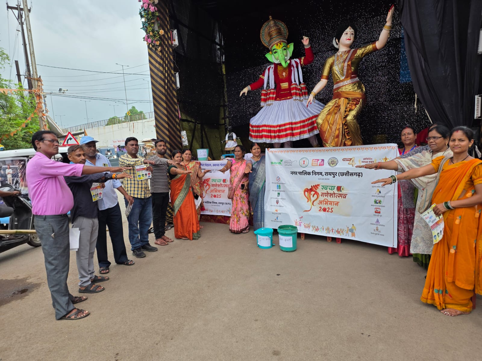इसी प्रकार स्वच्छ गणेशोत्सव अभियान 2025 के अंतर्गत नगर निगम जोन 7 स्वास्थ्य विभाग की पहल पर जोन 7 जोन अध्यक्ष श्रीमती श्वेता विश्वकर्मा, पर्यावरण एवं उद्यानिकी विभाग के अध्यक्ष श्री भोलाराम साहू, नगर निगम जोन 7 जोन कमिश्नर श्री राकेश शर्मा के निर्देश पर कार्यपालन अभियंता श्री ईश्वर लाल टावरे, जोन स्वास्थ्य अधिकारी श्री आत्मानंद साहू के मार्गदर्शन में जोन 7 अंतर्गत रामनगर संत कबीर चौक के पास श्रीगणेश पंडाल के श्री गणेश उत्सव समिति पदाधिकारियों ने आमजनों सहित सामूहिक स्वच्छता शपथ ली.