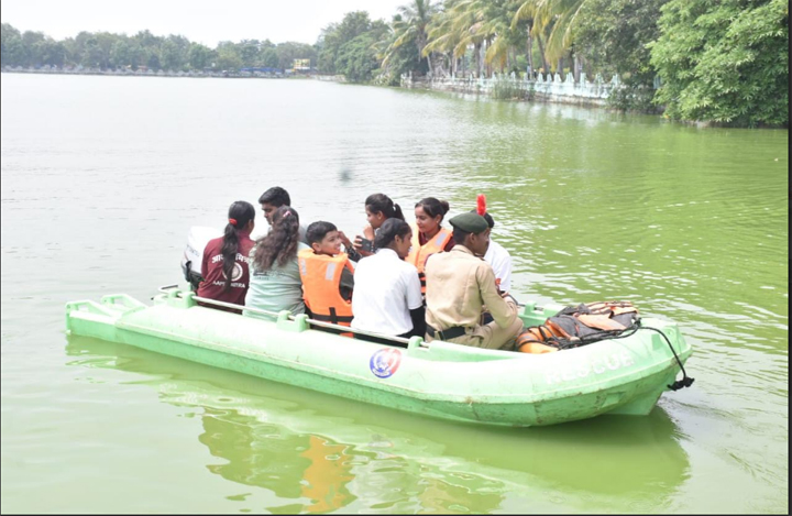 राजनांदगांव । राष्ट्रीय आपदा प्रबंधन प्राधिकरण गृह मंत्रालय भारत सरकार, छत्तीसगढ़ राज्य आपदा प्रबंधन प्राधिकरण राजस्व एवं आपदा प्रबंधन विभाग तथा जिला आपदा प्रबंधन प्राधिकरण राजनांदगांव द्वारा राजनांदगांव शहर के रानीसागर तालाब में बाढ़ व आपदा से बचाव एवं मॉकड्रिल का आयोजन किया गया। इस दौरान आपदा प्रबंधन टीम द्वारा बाढ़ आपदा सामग्री, लाइफ जैकेट, रस्सी, बोट, ओबीएम मशीन उपकरणों की जांच करने के पश्चात मॉक एक्सरसाइज का अभ्यास किया गया। टीम द्वारा अभ्यास के दौरान आपदा सामग्री का संचालन एवं सावधानियों के बारे में विस्तृत जानकारी दी गई। आपदा के समय स्वयं और दूसरों की जीवन रक्षा एवं सुरक्षित रहने के संबंध में जानकारी दी गई। बचाव के साथ-साथ भविष्य में ऐसी घटनाओं से निपटने के लिए आपदा प्रबंधन की टीम द्वारा मॉकड्रिल का अभ्यास किया गया। जिला स्तरीय अग्निशमन एवं आपातकालीन सेवाओं की टीम तथा बाढ़ आपदा की टीम, आपदा मित्र की टीम के द्वारा संयुक्त रूप से मॉकड्रिल का अभ्यास किया गया। मॉकड्रिल का आयोजन आपदा प्रबंधन की तैयारियों को परखने तथा जनता को जागरूक करने के उद्देश्य से आयोजित किया गया। मॉकड्रिल में 15 आपदा मित्र, 50 एनसीसी एवं 50 एनएसएस कैडेट शामिल हुए। मॉकड्रिल में पुलिस, राजस्व, स्वास्थ्य, शिक्षा, जल संसाधन सहित अन्य विभाग के अधिकारी-कर्मचारी एवं बड़ी संख्या में नागरिकगण उपस्थित थे।