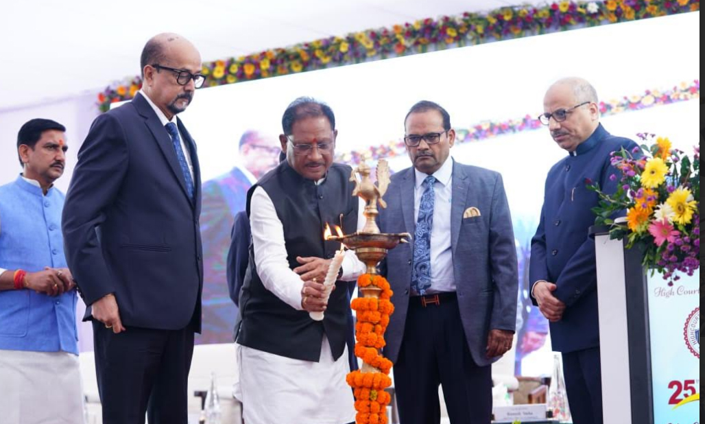 समारोह में विशिष्ट अतिथि के रूप में मौजूद मुख्यमंत्री श्री विष्णुदेव साय ने इस अवसर पर कहा कि हमारा प्रदेश छत्तीसगढ़ अपनी स्थापना की रजत जयंती मना रहा है। यह शुभ अवसर हमारे हाईकोर्ट की रजत जयंती का भी है। यह वर्ष हमारी विधानसभा का रजत जयंती वर्ष भी है। इन सभी शुभ अवसरों पर मैं आप सभी को हार्दिक बधाई देता हूँ।. उन्होंने कहा कि छत्तीसगढ़ हाईकोर्ट ने बिलासपुर की नगरी को एक नई पहचान दी है। इस शुभ अवसर पर हम भारत रत्न, पूर्व प्रधानमंत्री एवं हमारे राज्य के निर्माता श्रद्धेय श्री अटल बिहारी वाजपेयी जी को श्रद्धांजलि अर्पित करते हैं, जिनकी दूरदर्षिता से छत्तीसगढ़ राज्य एवं छत्तीसगढ़ उच्च न्यायालय की स्थापना संभव हो सकी।