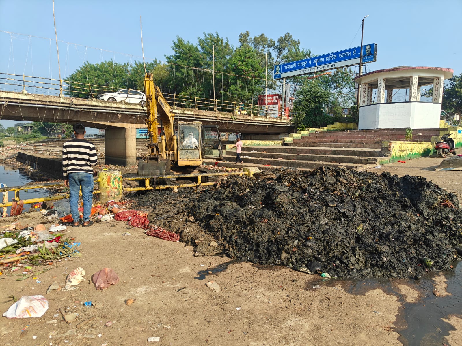 छठ पूजा पूर्व महादेवघाट में विशेष सफाई अभियान महादेवघाट छठ पूजा समिति के पदाधिकारियों के अनुरोध पर भगवान सूर्यनारायण के भक्तों की विशेष पूजा आराधना की सुविधा को ध्यान में रखते हुए नगर निगम रायपुर जोन 8 स्वास्थ्य विभाग की टीम द्वारा जोन 8 जोन अध्यक्ष श्री प्रीतम सिंह ठाकुर, माधव राव सप्रे वार्ड क्रमांक 69 के पार्षद श्री महेन्द्र औसर, संत रविदास वार्ड क्रमांक 70 के पार्षद श्री अर्जुन यादव, जोन 8 जोन कमिश्नर श्रीमती राजेश्वरी पटेल और कार्यपालन अभियंता श्री अतुल चोपड़ा के निर्देश पर चलाया जा रहा है, महादेवघाट में छठ पूजा पूर्व विशेष सफाई अभियान का निरीक्षण और सतत मॉनिटरिंग जोन 8 जोन स्वास्थ्य अधिकारी श्री गोपीचंद देवांगन और स्वच्छता निरीक्षक श्री रितेश झा द्वारा की जा रही है. जोन 8 जोन अध्यक्ष और जोन 8 जोन कमिश्नर और जोन 8 कार्यपालन अभियंता ने छठ पूजा के पूर्व महादेवघाट में सर्वोच्च प्राथमिकता के आधार पर स्वच्छता कायम करना सुनिश्चित करवाने जोन 8 जोन स्वास्थ्य अधिकारी और स्वच्छता निरीक्षक को निर्देशित किया है.