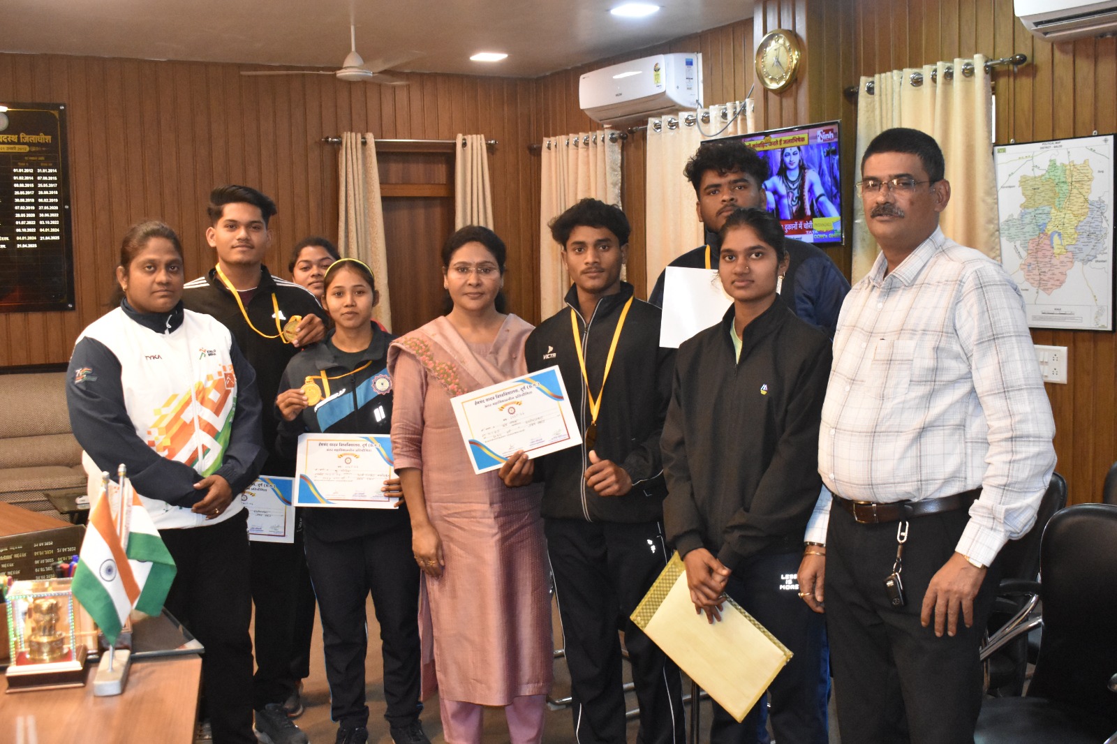 कलेक्टर श्रीमती मिश्रा ने अंतर महाविद्यालय प्रतियोगिता अंतर्गत वेटलिफ्टिंग में विजेता खिलाड़ियों को किया सम्मानित