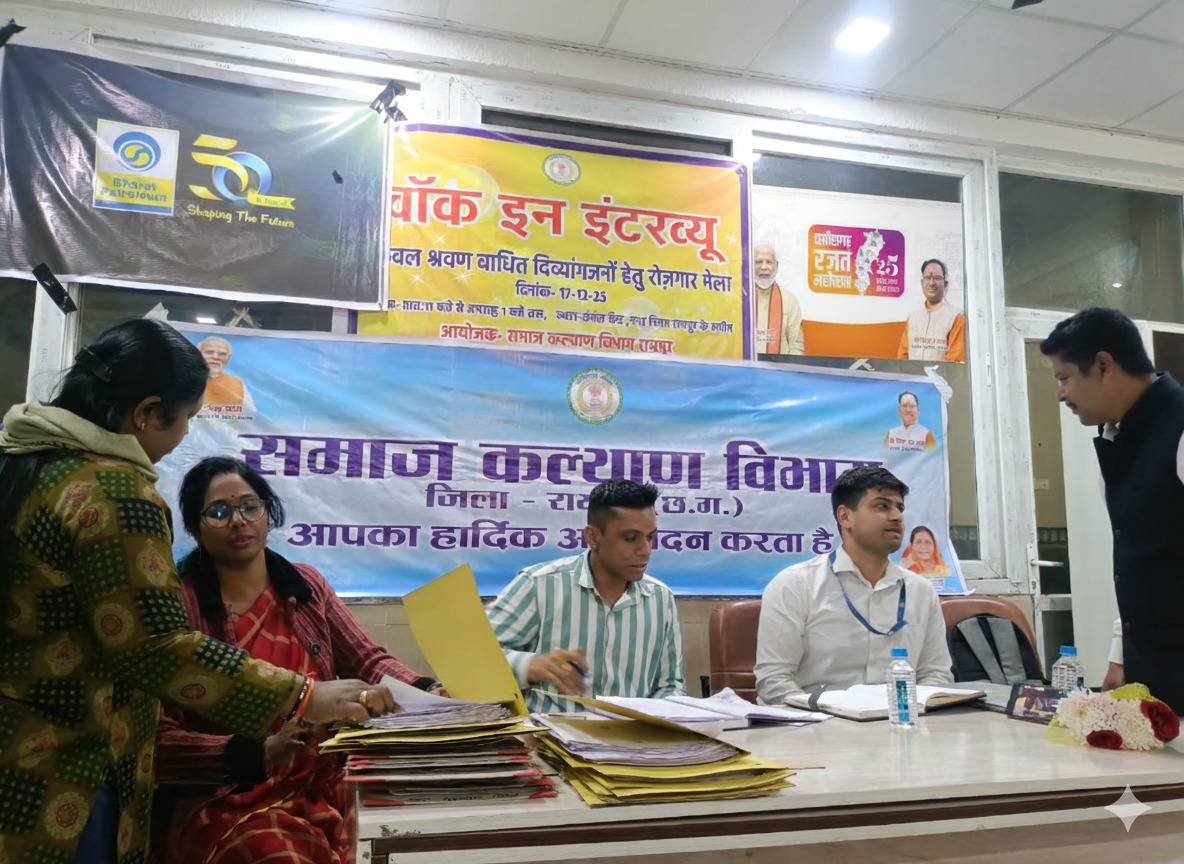 रायपुर. रजत जयंती के अवसर पर समाज कल्याण विभाग, जिला रायपुर द्वारा श्रवण बाधित दिव्यांग हितग्राहियो के लिए वॉक-इन इंटरव्यू का आयोजन किया गया। इस भर्ती प्रक्रिया के अंतर्गत भारत पेट्रोलियम द्वारा कुल 20 पदों पर भर्ती की जानी है। आयोजित वॉक-इन इंटरव्यू में रायपुर, नारायणपुर, जगदलपुर, दुर्ग, कवर्धा, बलौदाबाजार-भाटापारा, राजनांदगांव, धमतरी, गरियाबंध, बिलासपुर, सारंगढ़-बिलाईगढ़, रायगढ़, महासमुंद, बालोद एवं बेमेतरा सहित प्रदेश के विभिन्न जिलों से लगभग 93 श्रवण बाधित हितग्राहियों ने पंजीयन कर सहभागिता की।