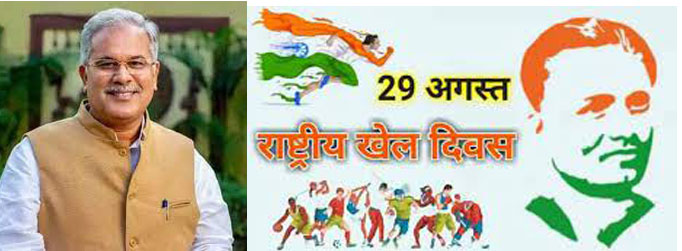 रायपुर / मुख्यमंत्री श्री भूपेश बघेल ने राष्ट्रीय खेल दिवस 29 अगस्त पर प्रदेशवासियों, खिलाड़ियों और खेल प्रेमियों को बधाई और शुभकामनाएं दी हैं। श्री बघेल ने हॉकी के जादूगर मेजर ध्यानचंद के योगदान को याद करते हुए कहा कि हॉकी के जादूगर कहे जाने वाले मेजर ध्यानचंद ने अपने खेल से देश सहित पूरे भारतवासियों का सिर गर्व से ऊंचा किया है। उनके सम्मान और याद में हर साल हम ध्यानचंद जी के जन्मदिवस को खेल दिवस के रूप में मनाते हैं।