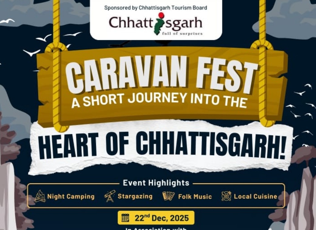 रायपुर। छत्तीसगढ़ पर्यटन को नए आयाम देने की दिशा में एक अनूठी पहल के रूप में “कैरा वैन फेस्ट‘‘ का आयोजन 22 दिसंबर 2025 को अरन्यम्म रिसॉर्ट, माना बस्ती, माना तूता रोड, रायपुर में किया जा रहा है। यह आयोजन छत्तीसगढ़ टूरिज्म बोर्ड के प्रायोजन में तथा ओवरलैंडर एसोसिएशन ऑफ इंडिया के सहयोग से संपन्न होगा। इस आयोजन की थीम है-‘‘अ शार्ट जर्नी इन टू द हार्ट ऑफ छत्तीसगढ़‘‘ शाम 4 बजे से 8 बजे तक चलने वाले इस विशेष फेस्टिवल में एडवेंचर, नेचर और संस्कृति का अनोखा संगम देखने को मिलेगा। कैरा वैन फेस्ट का उद्देश्य छत्तीसगढ़ को कैरा वैन टूरिज्म, कैंपिंग और अनुभवात्मक यात्रा के एक नए और आकर्षक गंतव्य के रूप में स्थापित करना है। कार्यक्रम की प्रमुख विशेषताएं हैं, नाइट कैंपिंग, स्टारगेजिंग, बॉलीवुड म्यूजिक और स्थानीय छत्तीसगढ़ी व्यंजन हैं। यह कार्यक्रम पूर्णतः निःशुल्क है और इस कार्यक्रम में भाग लेने के लिए पूर्व पंजीकरण अनिवार्य रखा गया है।
