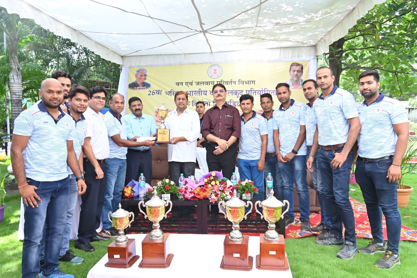 वन मंत्री श्री मोहम्मद अकबर ने छत्तीसगढ़ राज्य की अखिल भारतीय वन खेलकूद प्रतियोगिता में इस महत्वपूर्ण उपलब्धि पर प्रसन्नता व्यक्त करते हुए वन विभाग को बधाई एवं शुभकामनाएं दी। उन्होंने खिलाड़ियों का उत्साहवर्धन करते हुए कहा कि इनके बेहतर प्रदर्शन से वन विभाग की टीम सहित पूरा छत्तीसगढ़ राज्य गौरवान्वित हुआ है। साथ ही विभागीय काम-काज में भी वन विभाग का बेहतर प्रदर्शन रहा है। इसके परिणाम स्वरूप वन विभाग को अपने विभागीय गतिविधियों के बेहतर संचालन के लिए राष्ट्रीय स्तर पर 9 विभिन्न पुरस्कार भी प्राप्त हुए है। कार्यक्रम को प्रधान मुख्य वन संरक्षक एवं वन बल प्रमुख श्री व्ही. श्रीनिवास राव तथा नोडल अधिकारी एपीसीसीएफ श्री सुनील मिश्रा ने भी संबोधित किया और प्रतियोगिता में छत्तीसगढ़ के वन विभाग की टीम की सफलता पर प्रसन्नता व्यक्त की। अखिल भारतीय वन खेलकूद प्रतियोगिता में टेनिस, टेबल टेनिस, बैडमिन्टन, तैराकी, कैरम, चेस, वेटलिफ्टिंग, पावर लिफ्टिंग, कबड्डी जैसे इंडोर गेम के साथ-साथ क्रिकेट, फुटबॉल, बॉस्केट बॉल, हॉकी, गोल्फ, एथलेटिक्स के विभिन्न इवेंट होते है। इस प्रतियोगिता में वन विभाग के उच्चतम अधिकारी पीसीसीएफ से लेकर गॉर्ड तक खेल स्पर्धाओं में भाग लेते है।