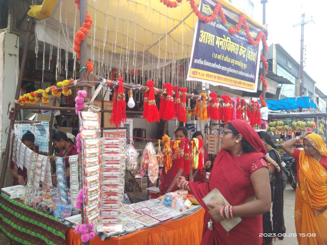 महासमुंद के नयापारा स्थित घरौंदा केंद्र में लगभग 20 मानसिक दिव्यांगों के द्वारा आकर्षक राखियां बनाई जा रही हैं जो कम कीमत की होने के साथ लोगों की पहली पसंद बनी हुई है। 27 अगस्त से बाजार में इन राखियों स्टाल लगाकर बेचा जाएगा। अब तक यहां बच्चों के द्वारा 1500 से ज्यादा राखियां बनाई जा चुकी हैं। गौर करने वाली बात यह है इन राखियों की बाजार में काफी डिमांड भी देखी जा रही है। 5 रुपए से लेकर 100 रुपए तक की राखियां लोगों की पहली पसंद बनी हुई है।कलेक्टर श्री प्रभात मलिक को भी इन बहनों ने राखी बांधी। उन्होंने इनके काम को बहुत सराहा।