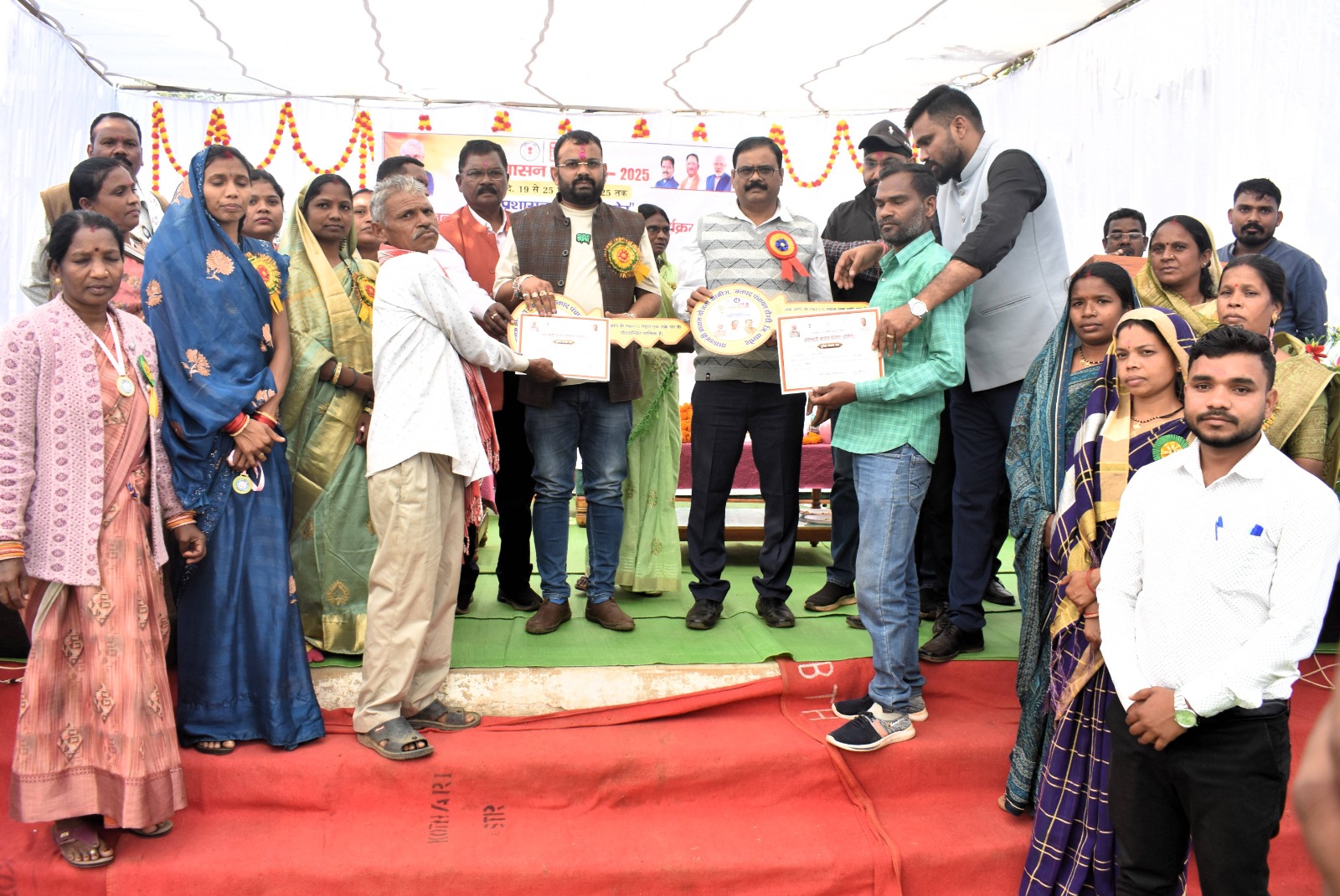 बालोद. केन्द्र सरकार के द्वारा पूर्व प्रधानमंत्री स्व. अटल बिहारी वाजपेयी जयंती के अवसर पर 19 से 25 दिसंबर तक आयोजित सुशासन सप्ताह 2025 के अंतर्गत आज जिले के आदिवासी बहुल डौण्डी विकासखण्ड के ग्राम भैंसबोड़ में आयोजित ’प्रशासन गांव की ओर’ शिविर में ग्रामीणों का हुजुम उमड़ पड़ा। ग्राम भैंसबोड़ में आयोजित समारोह में जनप्रतिनिधियों के अलावा अधिकारी-कर्मचारी एवं ग्राम पंचायत भैंसबोड़ सहित आसपास के अनेक ग्राम पंचायतों से बड़ी संख्या में जनप्रतिनिधि एवं ग्रामीणजन शामिल हुए। समारोह में मुख्य अतिथि के रूप में राज्य एथेलेटिक्स संघ के उपाध्यक्ष श्री सौरभ लुनिया उपस्थित थे। समारोह में विशिष्ट अतिथि के रूप में जनपद उपाध्यक्ष श्री भोलाराम नेताम, वरिष्ठ जनप्रतिनिधि श्री धमेन्द्र गड़ियोक के अलावा एसडीएम श्री सुरेश साहू, तहसीलदार श्री देवेन्द्र नेताम, जनपद पंचायत के मुख्य कार्यपालन अधिकारी श्री डीडी मण्डले, ग्राम पंचायत भैंसबोड़ के सरपंच श्री चित्रकांत ठाकुर सहित आसपास के ग्राम पंचायतों के सरपंच एवं अन्य जनप्रतिनिधिगण उपस्थित थे। इस अवसर पर अतिथियों के द्वारा शिविर में उपस्थित हितग्राहियों को शासन के विभिन्न जनकल्याणकारी योजनाओं से लाभान्वित भी कराया गया। इसके अलावा शिविर में विधि-विधान के साथ मंत्रोच्चार कर तथा नन्हें-मुन्हें बच्चों को स्वादिष्ट खीर खिलाकर उनका अन्नप्राशन कराया गया। इसके अलावा जिला प्रशासन द्वारा चलाए जा रहे कुपोषण मुक्ति अभियान के अंतर्गत नन्हें-मुन्हें बच्चों को सुपोषण किट भी प्रदान किया गया। इस दौरान स्वास्थ्य विभाग के द्वारा शिविर में उपस्थित 110 ग्रामीणों का स्वास्थ्य परीक्षण कर उन्हें निःशुल्क दवाइयां वितरित भी की गई। उल्लेखनीय है कि भैंसबोड़ शिविर में आज विभिन्न विभागों से प्राप्त कुल 149 आवेदनों में से 76 आवेदनों को मौके पर ही निराकृत किया गया।