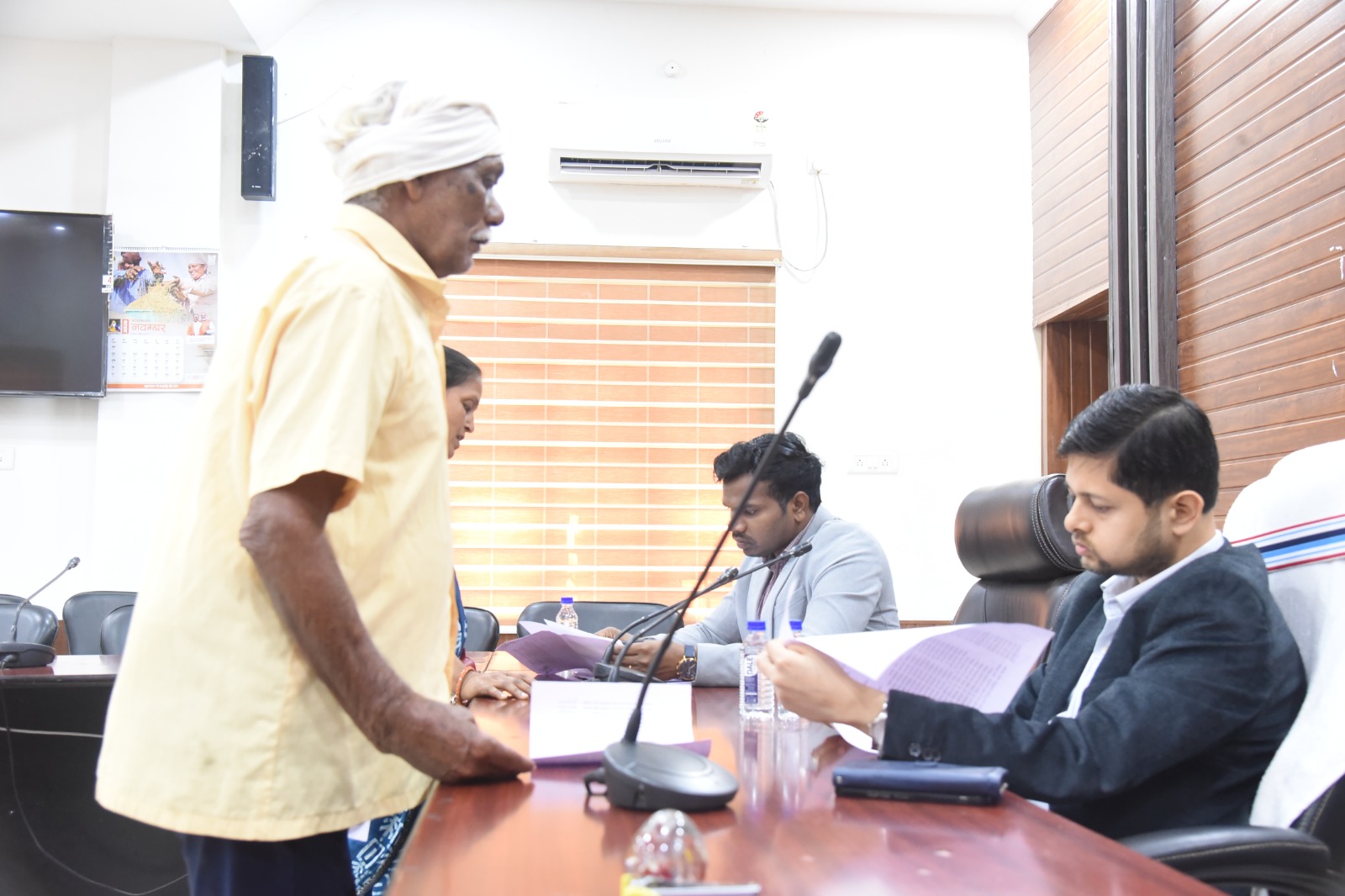 दुर्ग / जिला कार्यालय के सभाकक्ष में कलेक्टर श्री अभिजीत सिंह ने सोमवार को जनदर्शन कार्यक्रम में पहुंचे जनसामान्य लोगों से मुलाकात कर उनकी समस्याएं सुनी। उन्होंने जनदर्शन में पहुंचे सभी लोगों की समस्याओं को गंभीरता से सुना और समुचित समाधान एवं निराकरण करने संबंधित विभागों को शीघ्र कार्यवाही कर आवश्यक पहल करने को कहा। जनदर्शन में अवैध कब्जा, आवासीय पट्टा, प्रधानमंत्री आवास, भूमि सीमांकन कराने, सीसी रोड निर्माण, ऋण पुस्तिका सुधार, आर्थिक सहायता राशि दिलाने सहित विभिन्न मांगों एवं समस्याओं से संबंधित आज 113 आवेदन प्राप्त हुए।