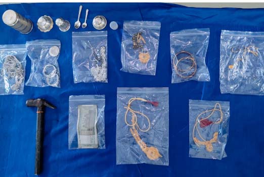 आरोपी लक्ष्मण सिंह ठाकुर, उम्र 30 वर्ष, निवासी खैरतराई बीचपारा, हाल डौण्डीलोहारा को हिरासत में लेकर पूछताछ की। आरोपी ने कबूल किया कि 19 जनवरी को उसने मोटरसाइकिल और लोहे की हथौड़ी लेकर झलमला पहुंचा।उसने पहले एक मकान की दीवार फांदकर चैनल गेट और दरवाजे का ताला तोड़ा, अंदर रखी नकदी 4 हजार रुपये चुराई। इसके बाद पड़ोस के दूसरे मकान में घुसकर सोने-चांदी के जेवरात चुराए, जिनकी कुल कीमत 7 लाख 91 हजार रुपये बताई गई।आरोपी के कब्जे से चोरी का पूरा माल, नकदी 4 हजार रुपये, मोटरसाइकिल और हथौड़ी बरामद की गई। कुल जप्त माल की कीमत 8 लाख 52 हजार 450 रुपये है।