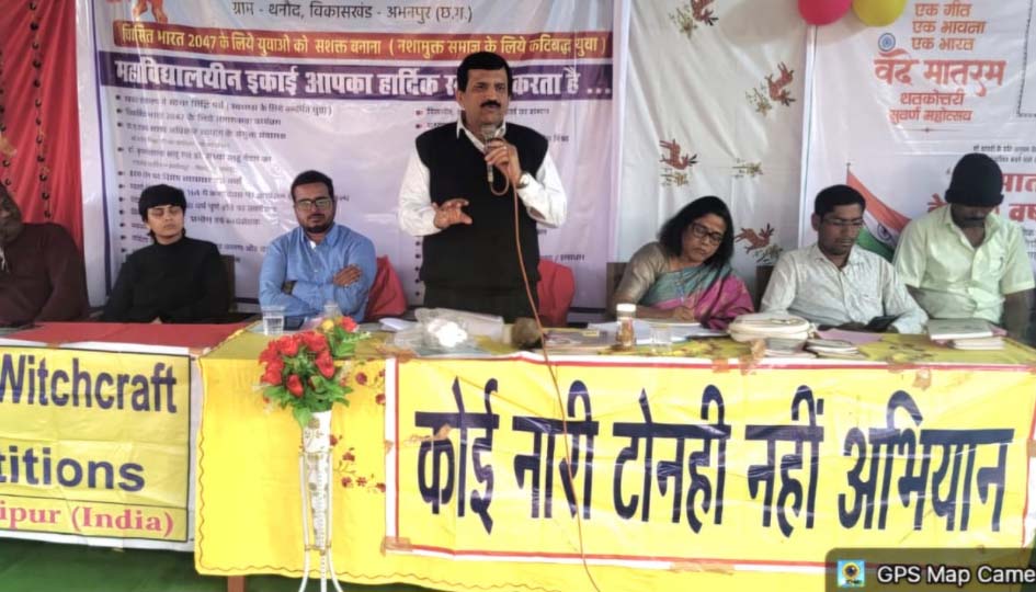 अभनपुर। अंधश्रद्धा निर्मूलन समिति के अध्यक्ष व नेत्र विशेषज्ञ डॉ. दिनेश मिश्र ने अभनपुर थनौद,में ग्रामीणों एवम शासकीय काव्योपाध्याय हीरालाल महाविद्यालय के छात्रों को संबोधित करते हुए कहा देश में अंधविश्वास और सामाजिक कुरीतियों के कारण अक्सर अनेक निर्दोष लोगों को प्रताड़ना का शिकार होना पड़ता है,जिससे निदान के लिए आम जन में वैज्ञानिक दृष्टिकोण के विकास की अत्यंत आवश्यकता है.