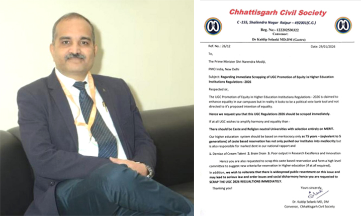 छत्तीसगढ़ सिविल सोसाइटी ने स्पष्ट किया है कि यदि उच्च शिक्षा में वास्तविक समानता और सामाजिक समरसता को बढ़ावा देना है, तो विश्वविद्यालयों को जाति और धर्म से निरपेक्ष रखते हुए चयन पूरी तरह मेरिट के आधार पर किया जाना चाहिए।