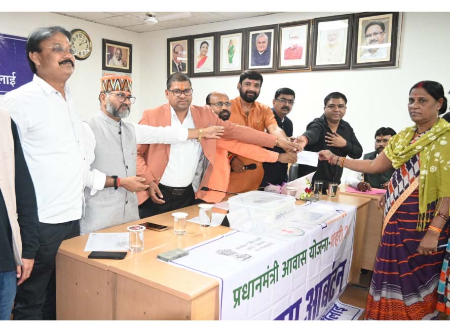 भिलाईनगर। शासन के महत्वाकांक्षी योजना प्रधानमंत्री आवास योजना अंतर्गत मकानहीन परिवार को पक्का मकान उपलब्ध कराया जा रहा है। नगर पालिक निगम भिलाई सभागार कक्ष में प्रधानमंत्री आवास आबंटन की लाटरी का आायोजन किया गया। लाटरी कार्यक्रम में वैशाली नगर विधायक रिकेश सेन, सभापति गिरवर बंटी साहू, आयुक्त राजीव कुमार पाण्डेय, नेता प्रतिपक्ष भोजराज सिन्हा, भाजपा जिला अध्यक्ष पुरूषोत्तम देवांगन, महापौर परिषद के सदस्य संदीप निरंकारी, पार्षद महेश वर्मा, सांसद प्रतिनिधि प्रमोद सिंह, पार्षद हरिओम तिवारी एवं अधीक्षण अभियंता सह आवास नोडल अधिकारी अजीत तिग्गा की उपस्थिति में 33 हितग्राहियों को आवास आबंटित किया गया है। भिलाई शहर में निवास कर रहे नागरिक जिनके पास स्वयं का पक्का मकान नहीं है, उन्हे सरकार द्वारा पक्का मकान उपलब्ध कराने की योजना चलाया जा रहा है। इस योजना के तहत नागरिकों को न्यूनतम दर पर पक्का मकान दिया जा रहा है। नागरिक नियमानुसार नगर निगम भिलाई के आवास शाखा में आवेदन किये है। आवेदक द्वारा जमा किये गये आवेदनों का सक्षम स्वीकृति लेने पश्चात आवास आबंटन की लाटरी कार्यक्रम का आयोजन किया गया। आज निगम सभागार कक्ष में कुल 33 पात्र हितग्राहियों का लाटरी निकालकर आवास आबंटित किया गया है। लाटरी के दौरान आवास प्रभारी विदयाधर देवांगन, सीएलटीसी किरण चतुर्वेदी, नम्रता ठाकुर, जी मोहन राव, नूतन साहू सहित अन्य कर्मचारी उपस्थित रहे।