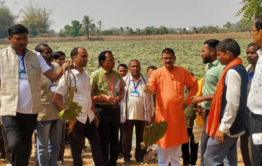 मध्यप्रदेश के किसानों का ग्राम लिंगाडीह आरंग में मखाना खेती भ्रमण एवं प्रशिक्षण संपन्न .