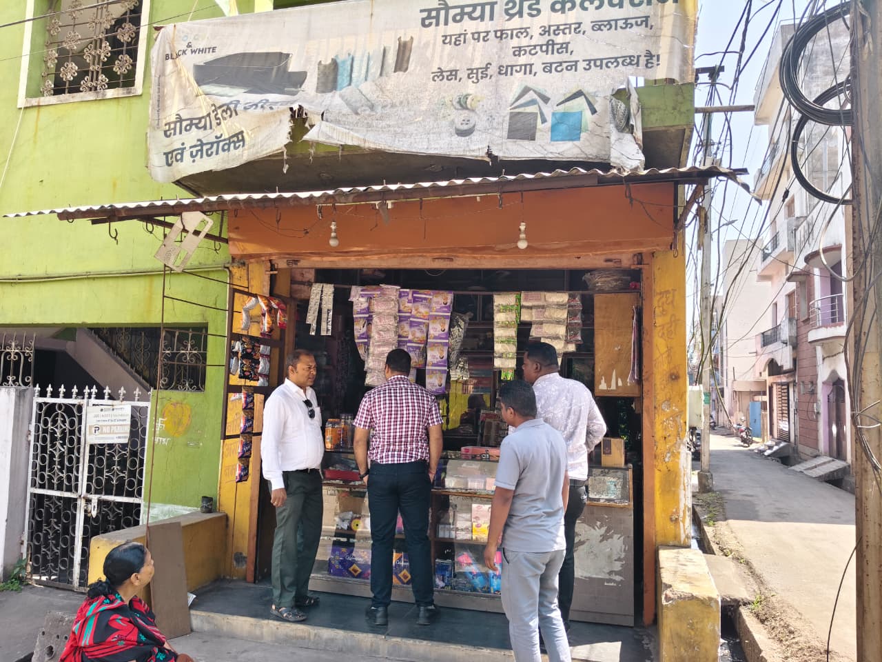 कार्यवाही में आज जोन 1 अतर्गत खमतराई स्कूल के सामने डेली नीड्स की दुकान और ठेला को व्यवस्था सुधार हेतु नशे की वस्तुए मिलने पर तत्काल स्थल पर कोटपा एक्ट अतर्गत सीलबंद करने की कड़ी कार्यवाही जोन 1 नगर निवेश विभाग द्वारा की गई। जोन 1 नगर निवेश विभाग ने अभियान चलाकर जोन क्षेत्र अतर्गत भनपुरी स्कूल एवं अन्य क्षेत्रो की स्कूलो के आस पास पान ठेलो और नशे की वस्तुओ के विक्रय केन्द्रों का औचक निरीक्षण किया और बड़ी मात्रा में गुटखा तम्बाखू, सिगरेट आदि नशे की वस्तुजो की जप्ती कर ली और संबंधित पान ठेला एवं दुकान संचालको को भविष्य में लगातार अभियान चलाकर नियमानुसार कड़ी कार्यवाही शासन के कोटपा एक्ट प्रावधान अनुसार करने की चेतावनी जोन 1 जोन कमिश्नर के मार्गनिर्देशन में दी गई।