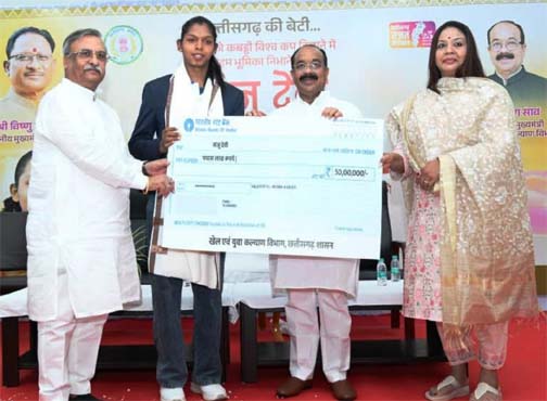 -उप मुख्यमंत्री अरुण साव ने सौंपा चेक, राज्य में पहली बार किसी खिलाड़ी को दी गई है इतनी बड़ी प्रोत्साहन राशि