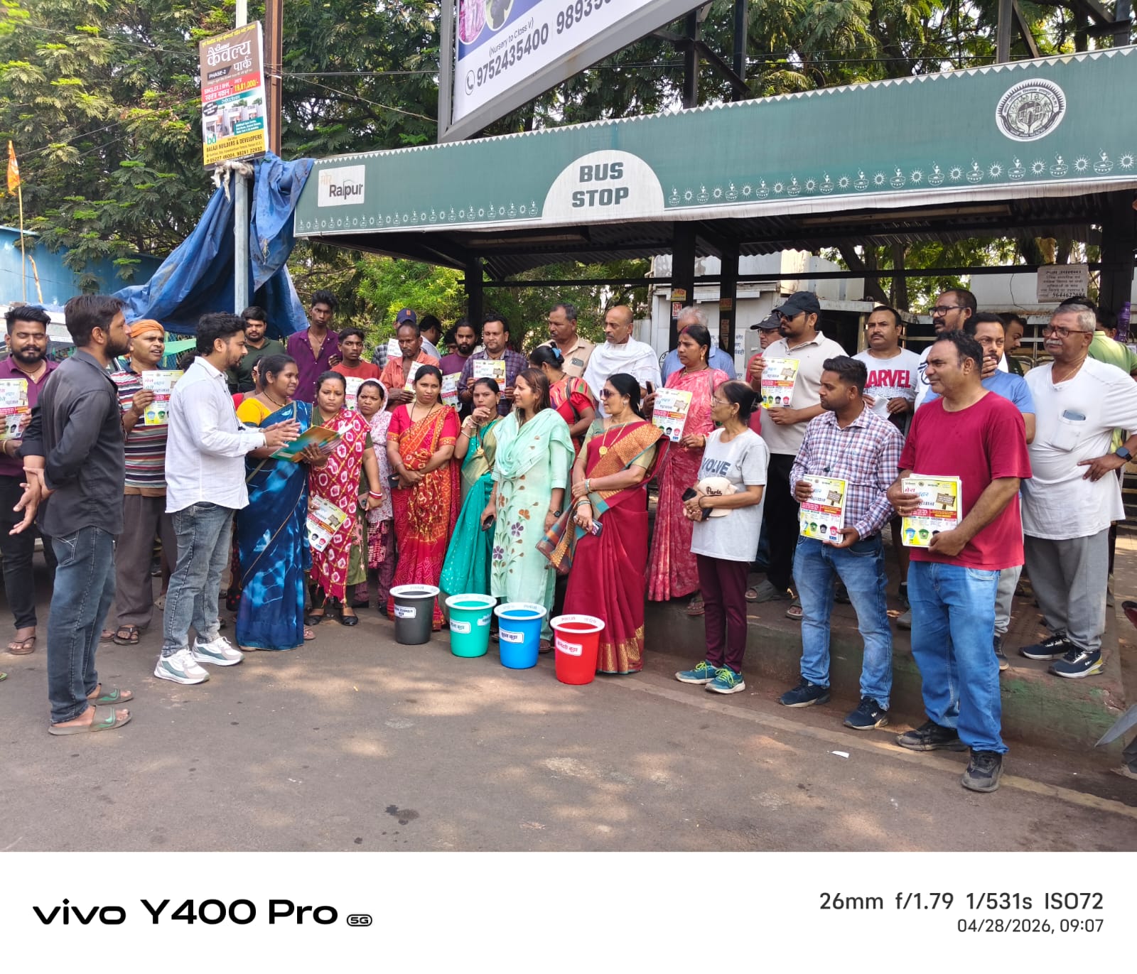 रायपुर/आज नगर पालिक निगम रायपुर की महापौर श्रीमती मीनल चौबे के निर्देश पर स्वच्छ सर्वेक्षण अभियान 2026 के अंतर्गत रायपुर नगर पालिक निगम जोन 8 स्वास्थ्य विभाग की टीम द्वारा रायपुर नगर निगम स्वास्थ्य विभाग अध्यक्ष श्रीमती गायत्री सुनील चन्द्राकर के नेतृत्व में नगर निगम जोन 8 क्षेत्र के अंतर्गत शहीद भगत सिंह वार्ड क्रमांक 21 क्षेत्र के अंतर्गत राजधानी शहर रायपुर में जीई रोड के किनारे टाटीबंध एम्स हॉस्पिटल के सामने लगने वाले ठेलों, गुमटियों के संचालकों और आमजनों के मध्य नगर निगम जोन 8 स्वास्थ्य विभाग की ओर से सफाई मित्रों और स्वच्छता दीदियों की उपस्थिति में स्वच्छ सर्वेक्षण अभियान 2026 अंतर्गत स्वच्छता जनजागरूकता अभियान चलाकर भजन कीर्तन के माध्यम से सकारात्मक स्वच्छता सन्देश दिया गया.