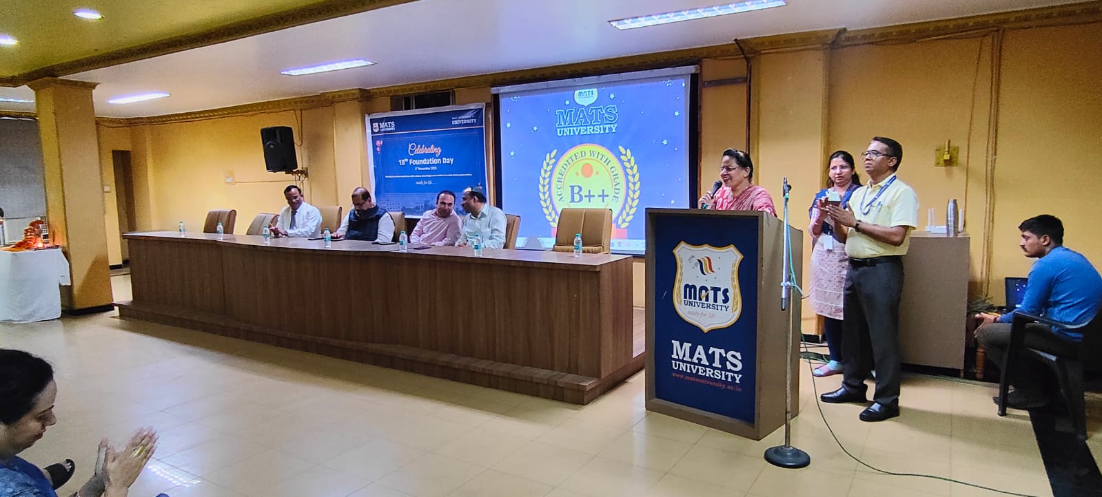 मैट्स यूनिवर्सिटी, रायपुर ने 3 नवंबर 2023 को अपना 18वां स्थापना दिवस यहाँ मैट्स परिसर स्थिति इम्पैक्ट सेंटर में मनाया। इस कार्यक्रम का शुभारंभ माँ सरस्वती की प्रतिमा पर दीप प्रज्जवलन एवं माल्यापर्ण के साथ किया गया। इस अवसर पर मैट्स यूनिवर्सिटी के कुलाधिपति श्री गजराज पगारिया ने कहा कि मैट््स यूनिवर्सिटी वर्ष 2006 में छत्तीसगढ़ राज्य में स्थापित होने वाला प्रथम निजी विश्वविद्यालय है जिसे भारत सरकार के राष्ट्रीय मूल्यांकन एवं प्रत्यायन परिषद (नेक) ने बी प्लस-प्लस ग्रे़ड प्रदान किया है। उन्होंने कहा कि हमारा उद्देश्य उच्च शिक्षा के माध्यम से विद्यार्थियों का सर्वांगीण विकास करना है। इस उद्देश्य की प्राप्ति के लिए विश्वविद्यालय प्रबंधन सहित सभी संकाय सदस्य, कर्मचारीगण दिन-रात प्रयासरत रहते हैं। श्री पगारिया ने कहा कि हमारे लिए यह गौरव का विषय है कि हमारे संस्थान से उच्च शिक्षा प्राप्त करने वाले विद्यार्थियों को राष्ट्रीय-अंतरराष्ट्रीय स्तर पर बेहतर प्लेसमेंट प्राप्त होता है और अनेक विद्यार्थी उद्यमी के रूप में समाज में स्थापित होते हैं।