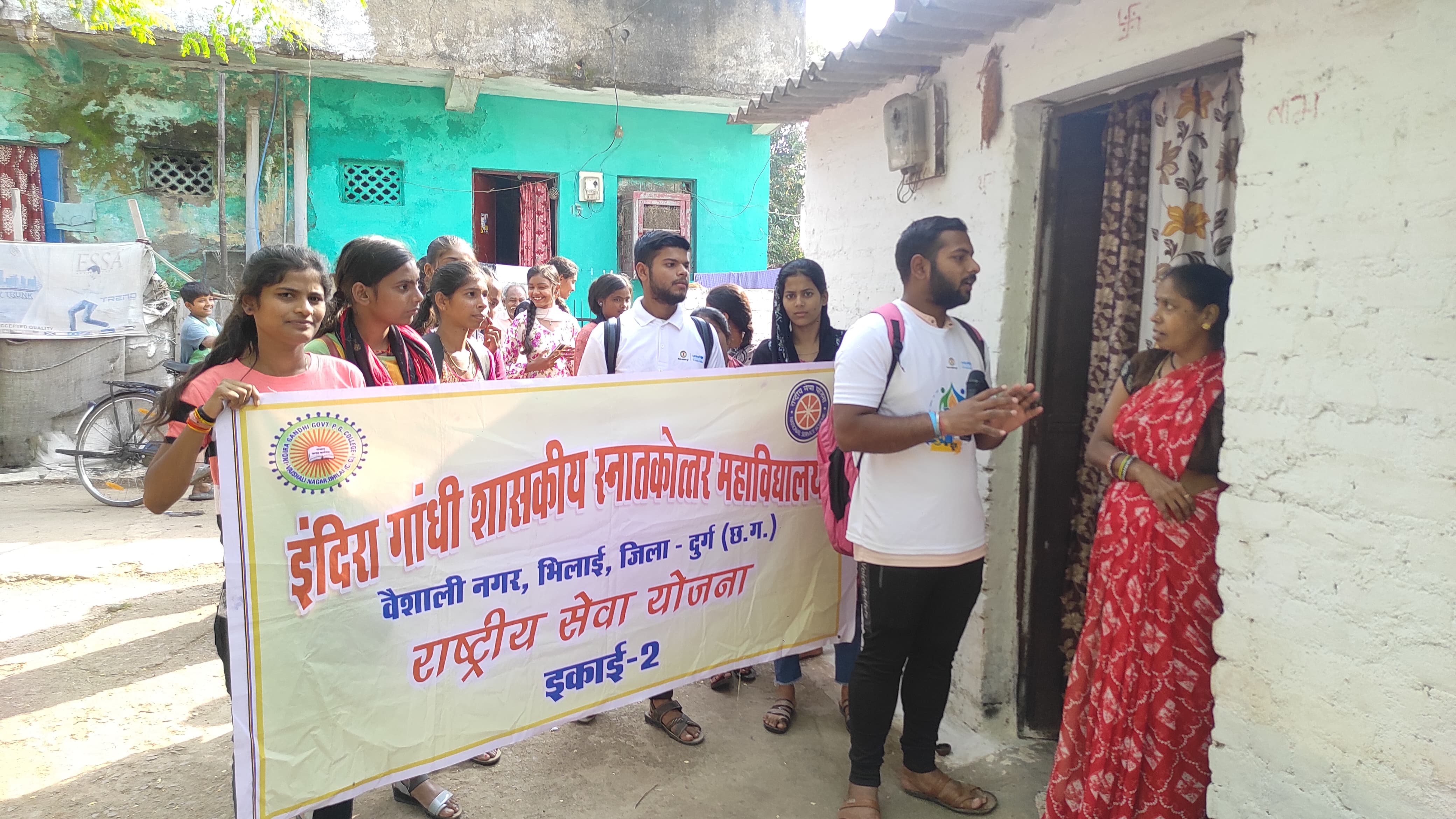 दुर्ग / आगामी 17 नवंबर को होने वाले विधानसभा चुनाव को ध्यान में रखते हुए जिला कलेक्टर के मार्गदर्शन एवं जिला पंचायत मुख्य कार्यपालन अधिकारी के दिशा निर्देश में युवोदय दुर्ग के दूत, इंदिरा गांधी शासकीय महाविद्यालय के स्वयं सेवकों द्वारा घर - घर जाकर निष्पक्ष मतदान हेतु लोगो को जागरुक किया गया। स्वयं सेवकों के द्वारा अटल आवास, जवाहर नगर,भिलाई क्षेत्र में यह अभियान चलाया गया। युवोदय स्वयं सेवकों के द्वारा लगातार मतदाता जागरूकता के साथ अन्य विषयो जैसे - मानसिक स्वास्थ्य, पर्यावरण, नशा मुक्ति, एएनसी चेकअप, पोषण ,एनीमिया जैसे विषयो के जागरूकता कार्य किया जा रहा है। आज के कार्यकम में नारे के माध्यम से और घर - घर जाकर परिवार के लोगो से मिलकर 17 नवंबर को मतदान केंद्र में जाकर अपने मताधिकार का उपयोग करने की अपील किया गया एवं शपथ ग्रहण कराया गया। आज के कार्यक्रम में युवोदय दुर्ग दूत से विजय कुमार गुप्ता, योगेश कुमार साहू, छत्रपाल साहू, साक्षी, खुशी, राखी, संजना गौतम, कंचन, काजल निषाद, मरियम खातून, तनुप्रिया साव , तनु भारती, शबनम, अनिता ,निशा शाह, निधि आदि उपस्थित रहे।