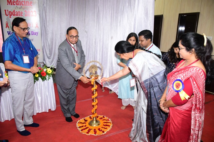 रायपुर। पंडित जवाहर लाल नेहरू स्मृति चिकित्सा महाविद्यालय एवं डॉ. भीमराव अम्बेडकर स्मृति चिकित्सालय के मेडिसिन रोग विभाग द्वारा राज्य स्तरीय वार्षिक सम्मेलन मेडिसिन अपडेट(एचआईवी अपडेट) 2023 का आयोजन अम्बेडकर अस्पताल के फिजियोथेरेपी हाल में शुक्रवार को किया गया। विश्व एड्स दिवस एक दिसंबर के उपलक्ष्य में आयोजित इस राज्य स्तरीय वार्षिक सम्मेलन का विषय एक कदम - एचआईवी नेमेसिस तक था। सुबह 9 से शाम 4 बजे तक आयोजित इस सम्मेलन में विभिन्न प्रकार के सत्रों(सेशन) का आयोजन किया गया जिसके अंतर्गत वैज्ञानिक सत्र में विशेषज्ञ डॉक्टरों के व्याख्यान, चिकित्सा छात्रों द्वारा पेपर एवं पोस्टर प्रेजेंटेशन और सांस्कृतिक गतिविधियां शामिल रहीं।